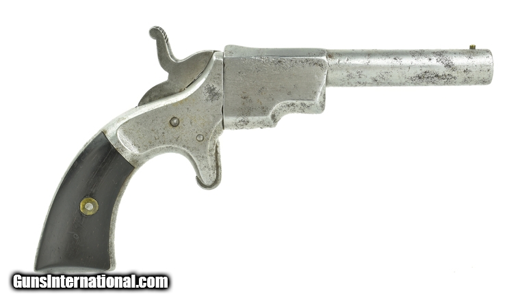 Rupertus Single Shot Derringer. .32 Rimfire, 4” barrel. Manufactured in 1870’s. Bore is very good. Action works by twisting the barrel to the left and breech block turns with the barrel. Scarce Rupertus Derringer!