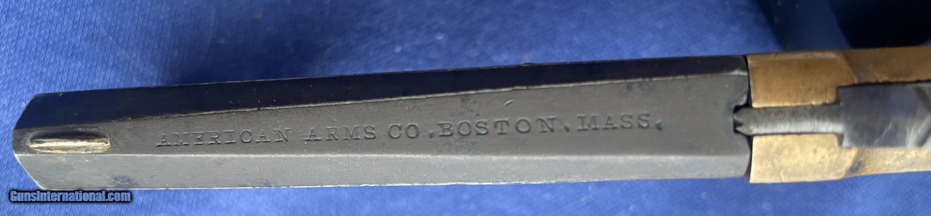 Description: SCARCE AMERICAN ARMS Co. BOSTON, MASS. TWIST BARREL .22 RF & .32 RF CALIBER DERRINGER. ONLY ABOUT 1500 OF THIS TYPE WERE MADE. IT IS IN VERY GOOD OVERALL CONDITION, BORE HAS DISTINCT RIFLING WITH SOME MINOR PITTING THAT IS LIGHT IN NATURE. ACTION WORKS WELL WITH TIGHT LOCK-UP, AS PICTURED AND FOUND IN A VERMONT COLLECTION. $15.00 S&H DIRECT TO YOU ANYWHERE THAT'S OK TO OWN. NO SALES TO NEW YORK STATE ! Antique: Yes Handgun Caliber: .22 Long, .32 Rimfire Manufacturer: AMERICAN ARMS Co. Model: TWIST BARREL DERRINGER Serial Number: 1012 Barrel Length: 3 Bore Info: BRIGHT Chambers: 2 Condition: VERY GOOD Metal Condition: VERY GOOD Wood Condition: AS PICTURED Bore Condition: GOOD Barrel Type: OCTAGON Action: CRISP & TIGHT Finish: AGED PATINA Weight: 10.2 oz Sights: FACTORY Price: $695.00 Buy Now Contact Seller |