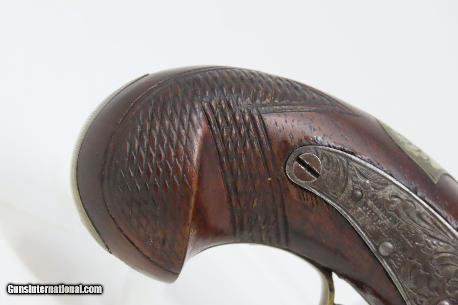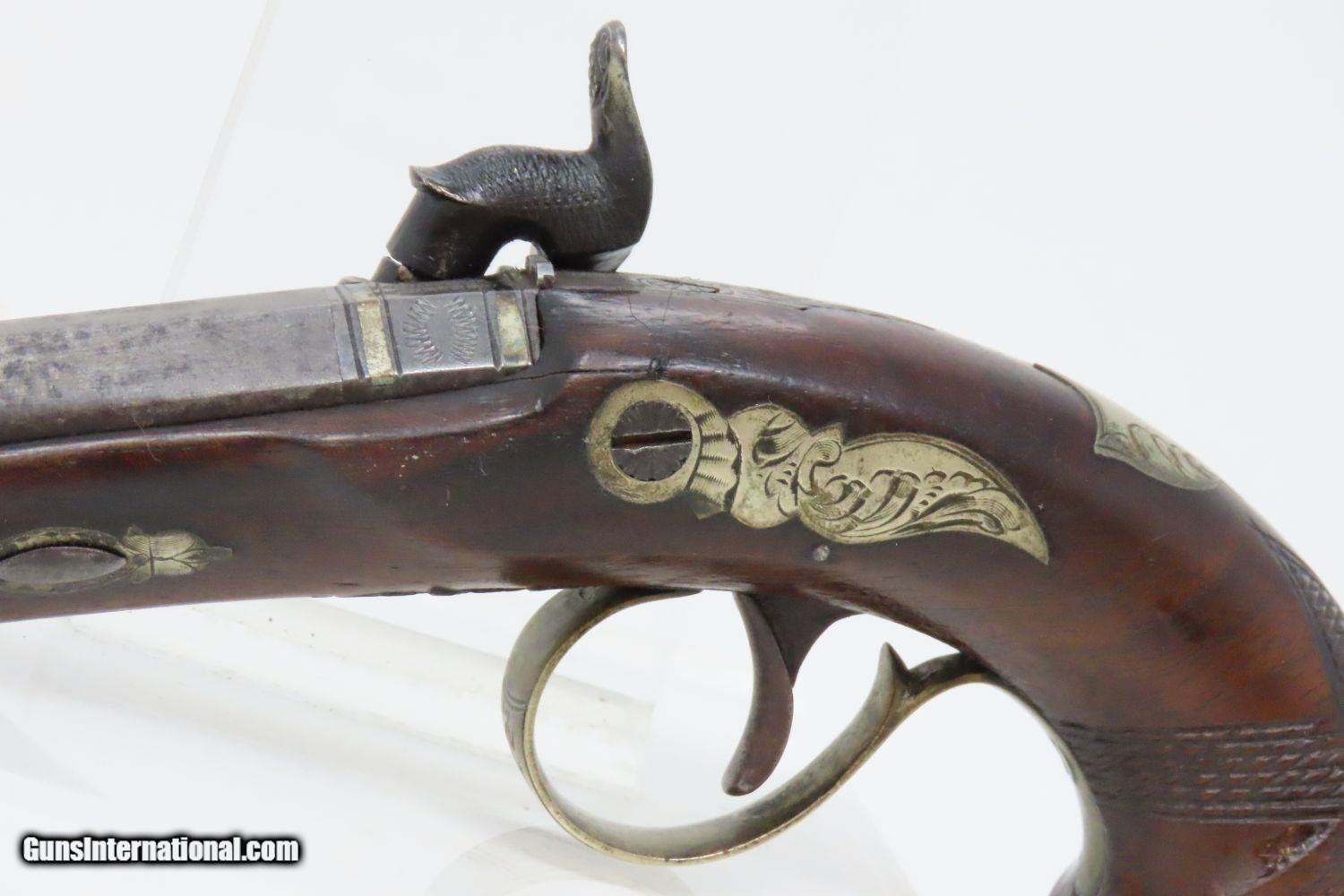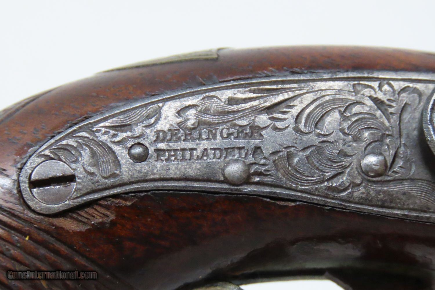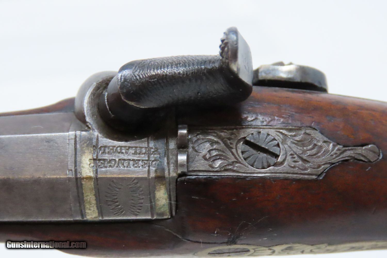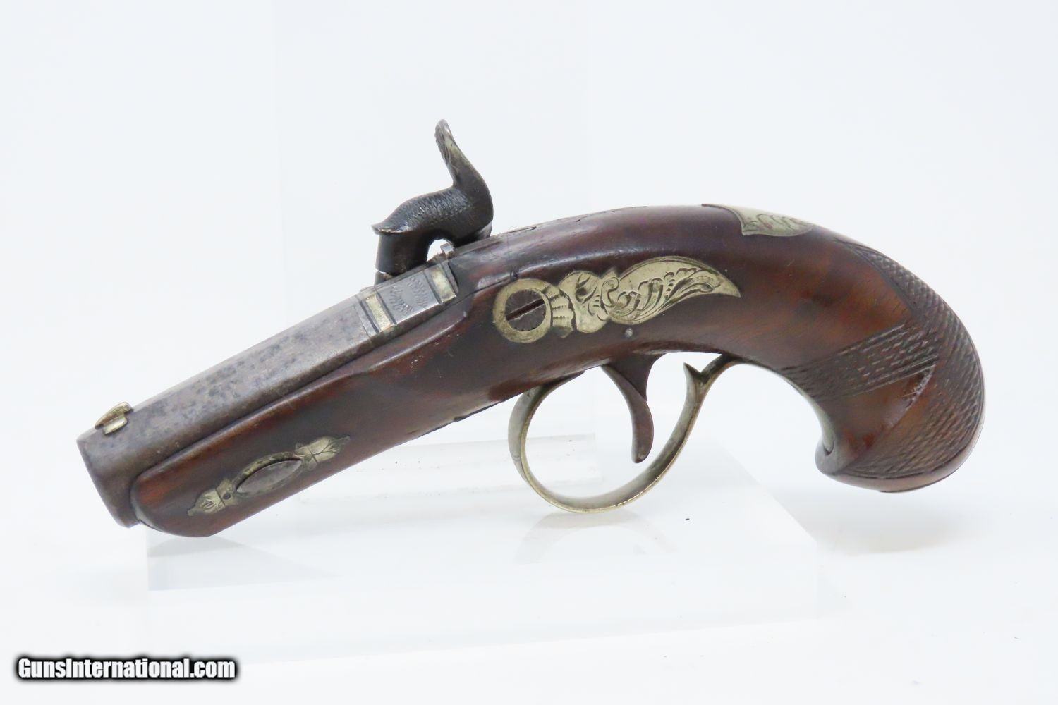Antique PHILADELPHIA DERINGER Percussion Pistol ENGRAVED Pocket 1850s ENGRAVED Self Defense Pistol with German Silver Accents!