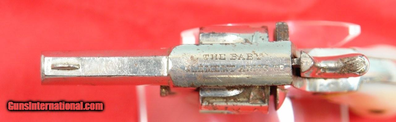 Description: 33060- CLEMENT ARMS CO “VELO DOG” FOLDING TRIGGER .22 RF (5.5 VELO) DERRINGER ANTIQUE POCKET REVOLVER. 6 shot revolver with 1.5” barrel. Nickel plated with pearlescent grips. Some signs of wear but in solid shape overall. $200 Antique: Yes Handgun Caliber: 5.5mm Velo Dog Price: $200.00 Contact Seller |