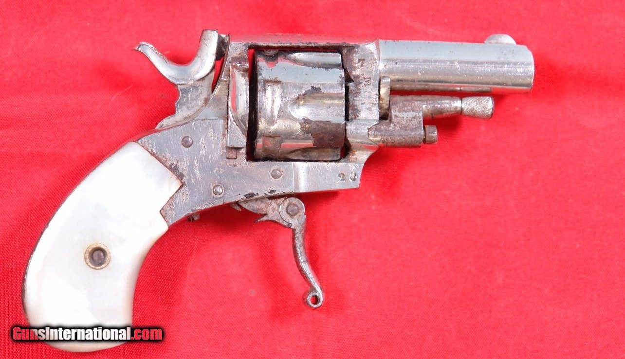 CLEMENT ARMS CO “VELO DOG” FOLDING TRIGGER .22 RF (5.5 VELO) DERRINGER ANTIQUE POCKET REVOLVER.