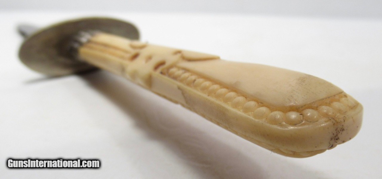 Description: Colt No.1 Deringer; Serial No. 1826; .41 Caliber; Dagger with Ivory Handle Marked “LASSERRE – N ORLEANS”; 4-5/8” Blade – 8 ½” L.O.A. with Nice Sheath; Card Cheat Device Marked “WIZARD”; Small Pair of Dice; 13 Various Poker Chips; Case is probably later than items; Knife may be reproduction; Chips, Dice, and Cheat Device Are Definitely Old; NOTE: French Immigrant L.P. Lasserre & Son, Auguste, Listed in New Orleans Directory as “Cutlers & Surgical Instrument Makers” During the Civil War Era; Really Neat Gambling Display Set; See All Photos for Condition; No Texts; Call (254)541-5765 or Email Only (collectingtexashotmail); PERSONAL PROPERTY of Harold Wieser; Price: $2,475 + $45 S&H Via USPS PRIORITY MAIL; Payment Address: Harold Wieser - 1466 U.S. Hwy 77 - Rosebud, TX 76570; SEND PAYMENTS VIA USPS PRIORITY MAIL; SOLD Antique: Yes Manufacturer: Colt Model: Deringer Serial Number: 1826 |