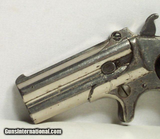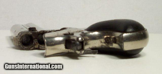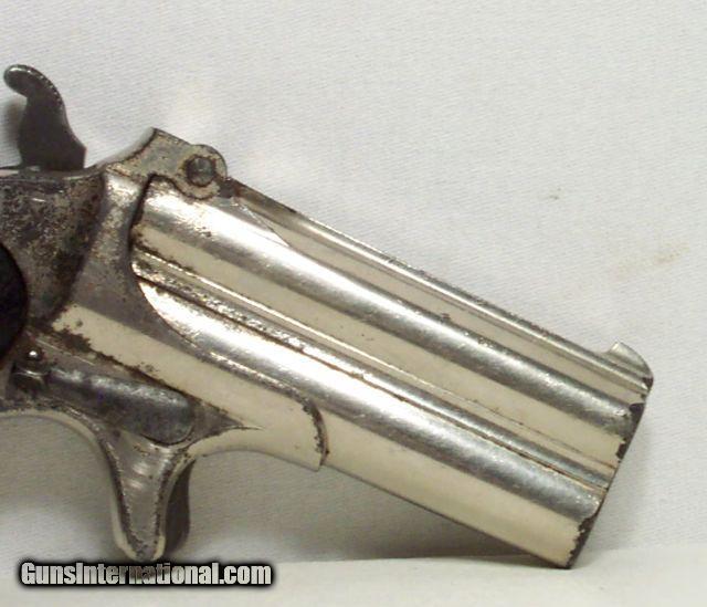 Description: Nice Remington O/U Derringer AKA “Model 95 Double Derringer” AKA “Over-Under Derringer”; .41 Rimfire caliber; SN 424; SCARCE type one late production; circa 1868; gun retains lots of original nickel finish; Nice original Rosewood Grips; GOOD action; bores pitted evenly with rifling present; GOOD hinges; 148 years old; SCARCE GUN; antique, no FFL/C&R required for shipping; All items shipped fully insured Priority Mail- -Hand guns $30 --Long guns $45-- Spurs $30-- Knives, Swords & Sabers $30 (Texas residents please add 6.75% sales tax); return policy: three days inspection from the date the item is received; full refund of shipping both ways ONLY IF THE ITEM IS MISREPRESENTED. Note: International sales only as laws permit. Will ship C&R eligible items to C&R license. Antiques shipped without license to anyone EXCEPT New Jersey and City of New York where a FFL is required. SOLD Antique: Yes Manufacturer: Remington Model: 95 Serial Number: 424 |