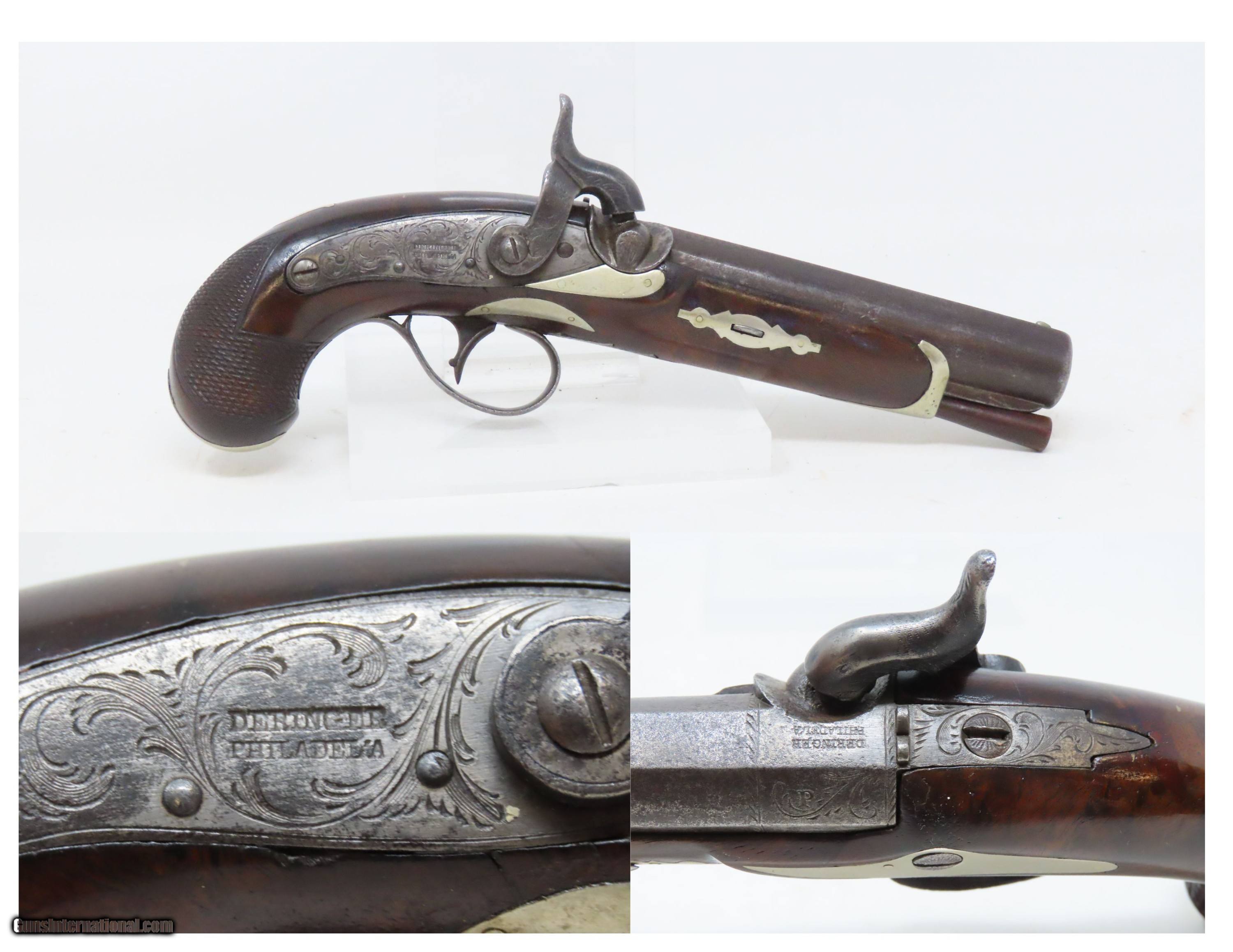 ENGRAVED & SILVER Mounted Antique DERINGER Percussion Pistol KILLED LINCOLN Henry Deringer’s Famous 1850s Pocket Pistol