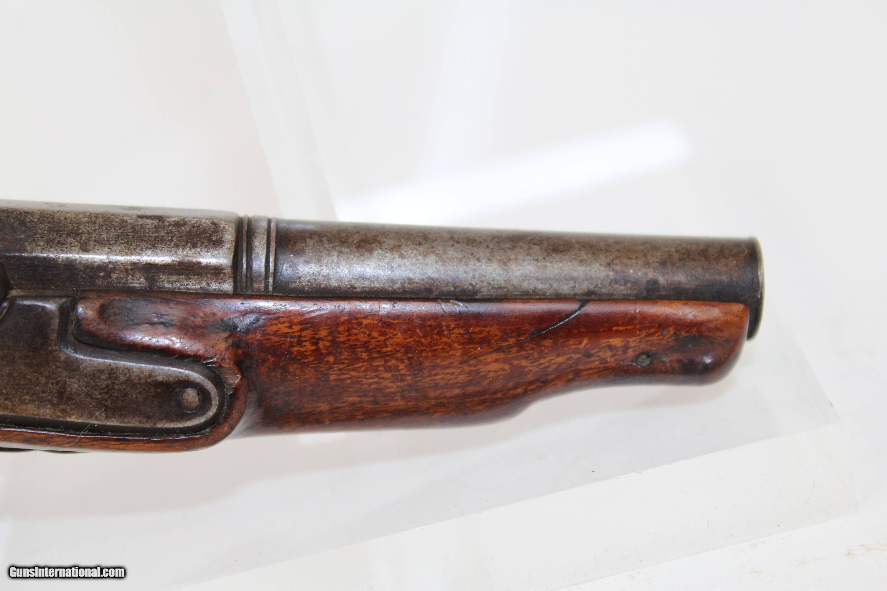 Description: FRENCH Antique DERINGER-Style Percussion Pistol Pocket Pistol from the Mid-1800s Here we present an antique French Deringer-Style Percussion Pocket Pistol, made circa the mid-19th Century. This was designed to be used as a self-defense tool that could fit in the pocket. It features a partially octagonal/round barrel with a bore size of .36 caliber. The stock is full-length with a curved bird’s head grip. The hammer spur is high and curved. The overall condition is good. The metal surfaces are dark with age. There are no visible markings. The stock is solid. The bore is smooth. The action on this pistol is excellent, strong and crisp. Own the original! This is a legitimate antique and not a reproduction. Barrel is 3-3/4 inches. Caliber: .36 Percussion Overall condition as seen in photos. Very Fast. Very Safe. FREE SHIPPING WORLDWIDE. Delivered directly to your door by express mail! Guaranteed AUTHENTIC & Includes CERTIFICATE OF AUTHENTICITY. ancestryguns $725 #6564 SOLD Antique: Yes |