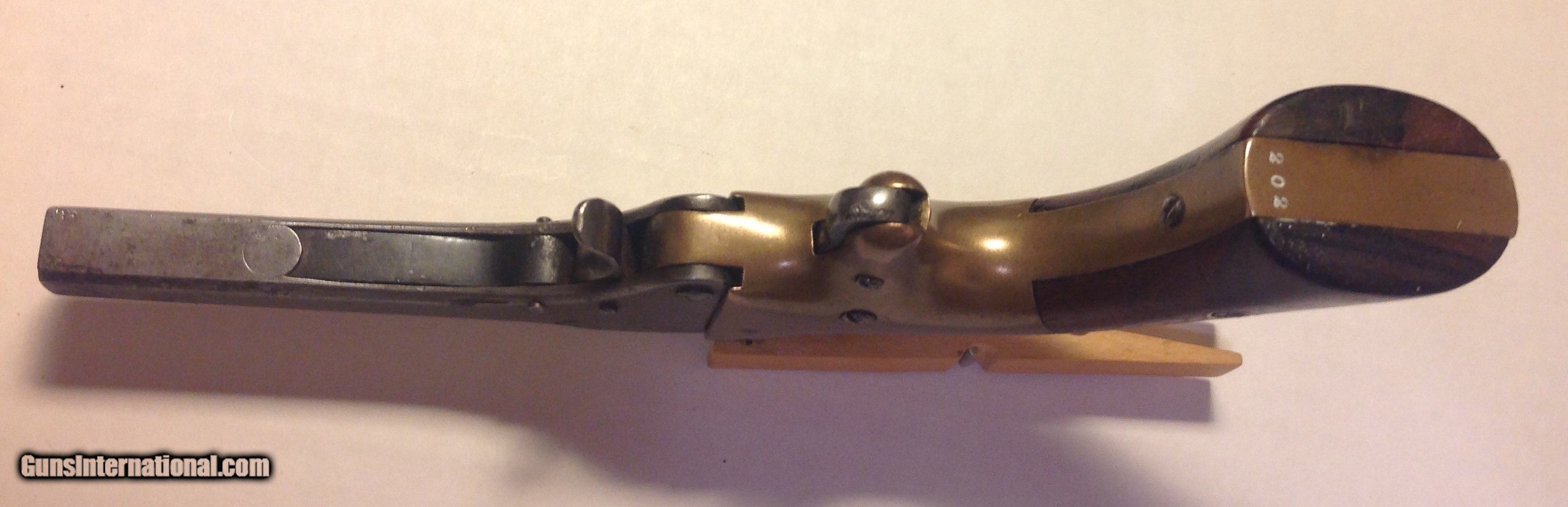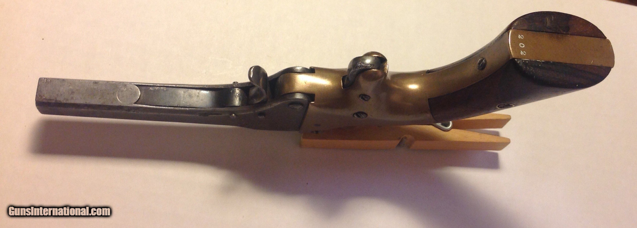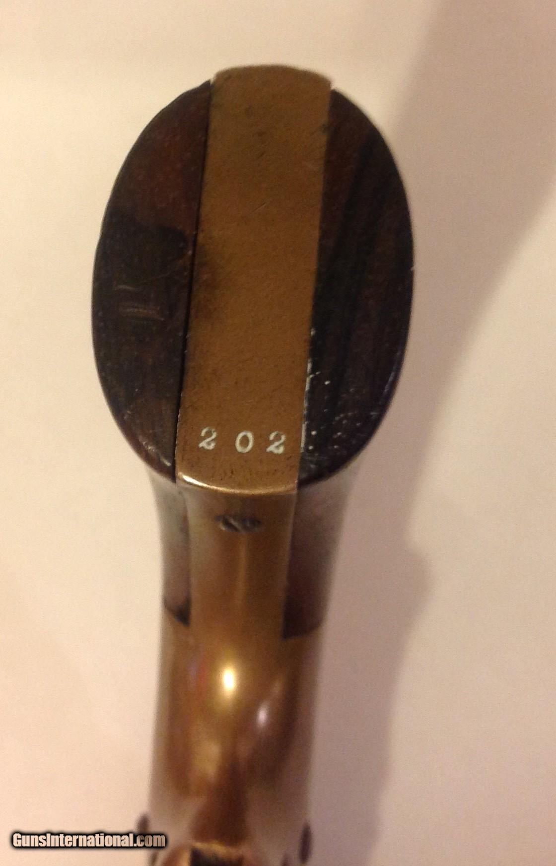 Description: This pistol is extremely rare, in fladermans they say there were under 200 made but this one is numbered 202 and is matching numbered could be last one made ?. It was made in the 1860's and works perfectly and still has some of the original blueing and casecolor on hammer. half cock and full cock holds as it should. This very rare pistol is impossible to find in any condition and this baby is in NRA fine. It has never been messed with. This gun needs nothing to make it right because it is right and correct as it should and the Grips are mint with no chips or brakes or any repairs of any kind. Forword trigger opens the action, this is a single action pistol. any questions please ask. Shipping charge $25, I ship USPS priority mail insured. this is an antique so no FFL is needed to buy. I feel my asking price is actually half of value. payment, check, money orders, or credit card add 3%. my asking price is $775.00 SOLD Antique: Yes |