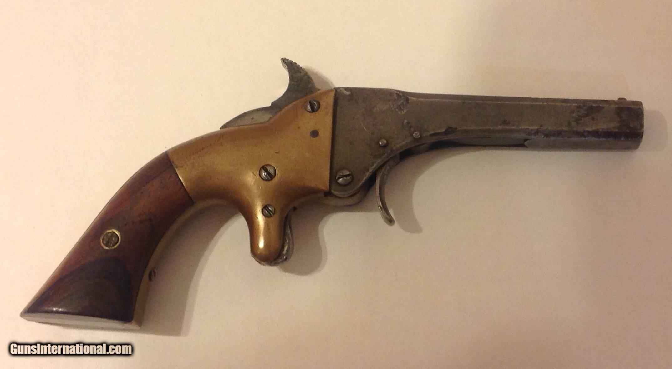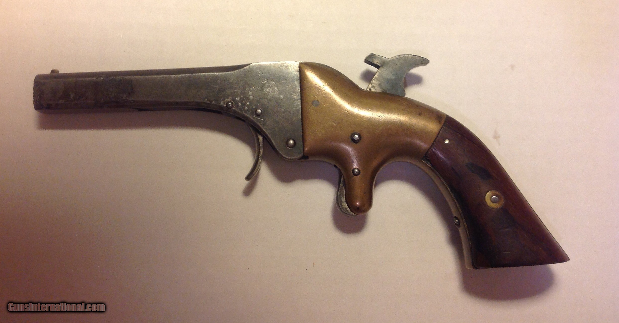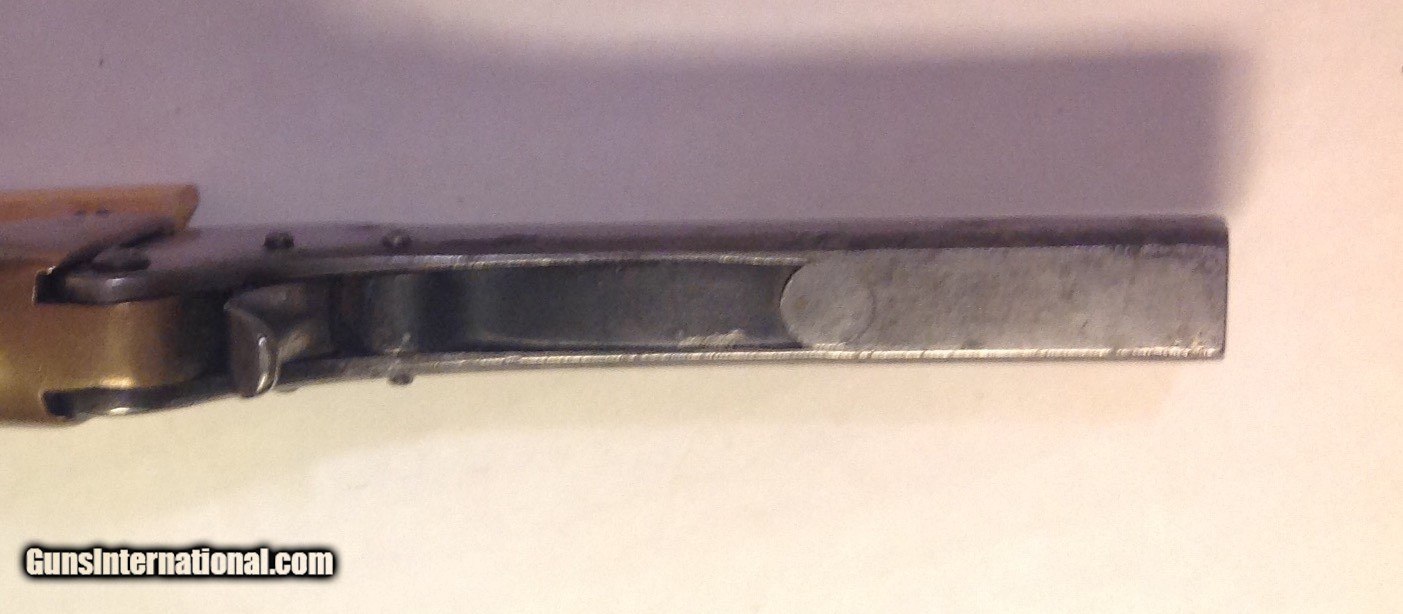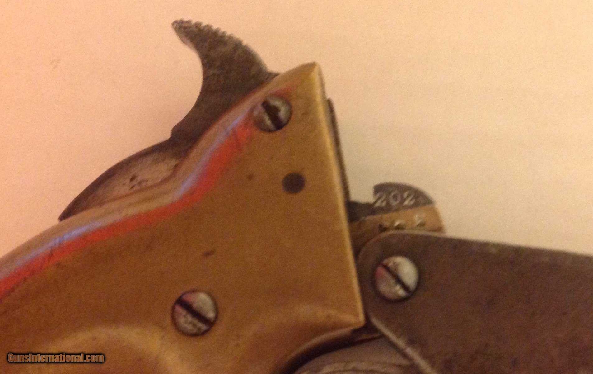 Description: This pistol is extremely rare, in fladermans they say there were under 200 made but this one is numbered 202 and is matching numbered could be last one made ?. It was made in the 1860's and works perfectly and still has some of the original blueing and casecolor on hammer. half cock and full cock holds as it should. This very rare pistol is impossible to find in any condition and this baby is in NRA fine. It has never been messed with. This gun needs nothing to make it right because it is right and correct as it should and the Grips are mint with no chips or brakes or any repairs of any kind. Forword trigger opens the action, this is a single action pistol. any questions please ask. Shipping charge $25, I ship USPS priority mail insured. this is an antique so no FFL is needed to buy. I feel my asking price is actually half of value. payment, check, money orders, or credit card add 3%. my asking price is $775.00 SOLD Antique: Yes |