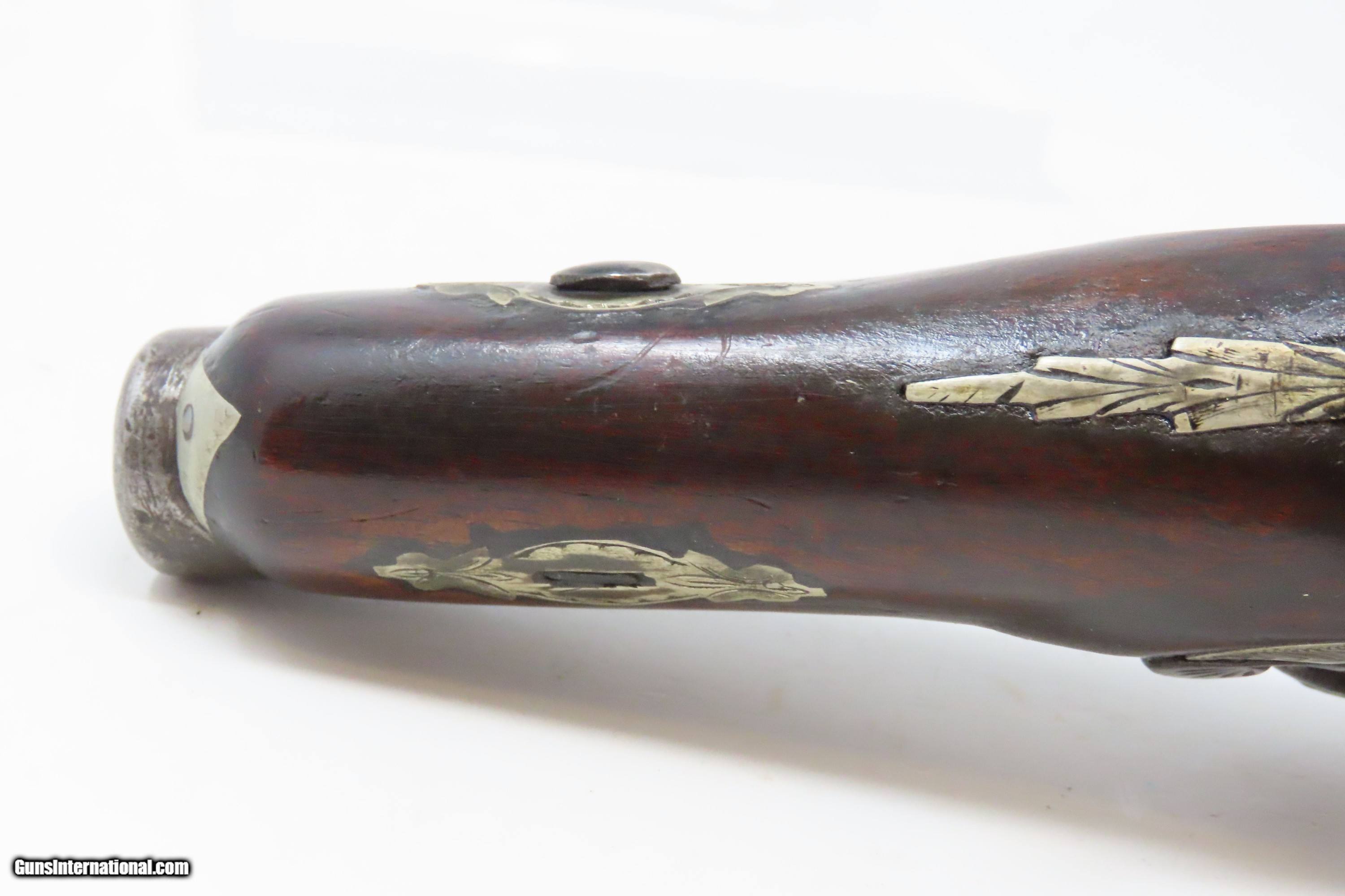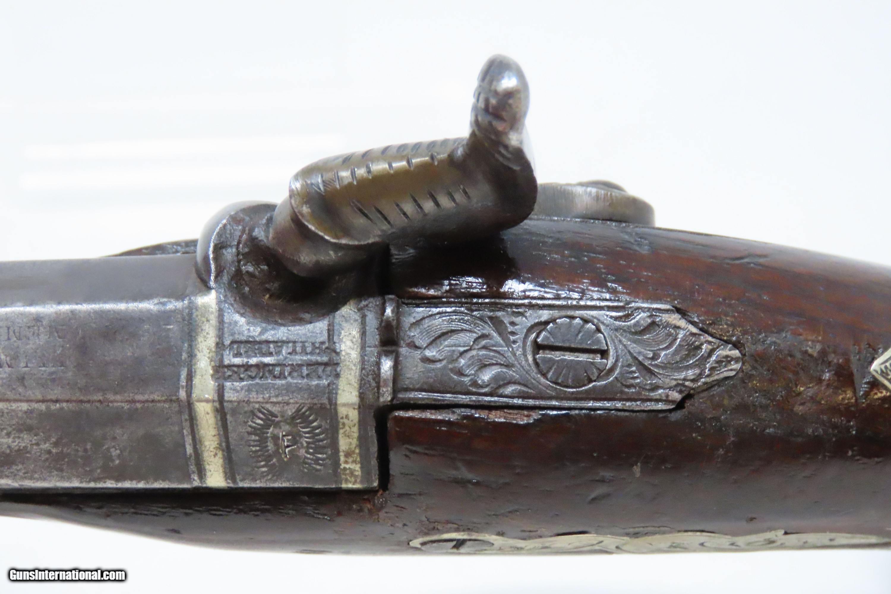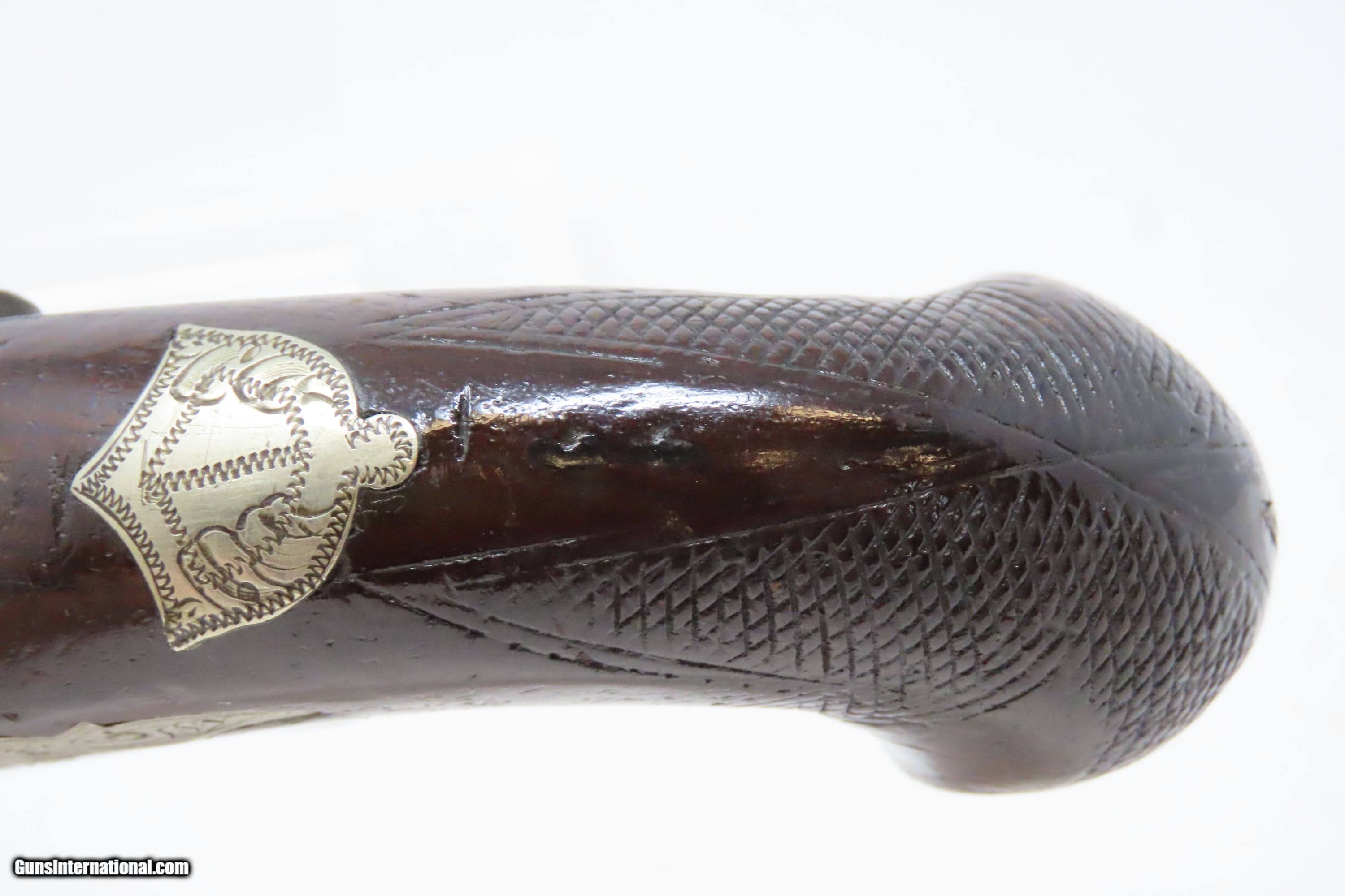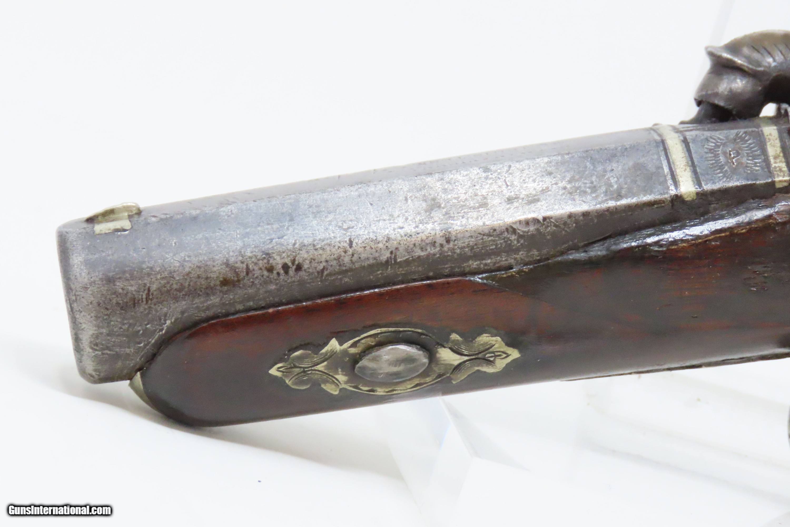 Description: Memphis TN Pre-Civil War Dealer LULLMAN & VIENNA Antique HENRY DERINGER .45 Famous Riverboat Gambler & Sneak Pistol Here we present an antique Henry Deringer Percussion Pocket Pistol, made circa the 1850s in Philadelphia, Pennsylvania. This example is marked “LULLMAN & VIENNA MEMPHIS TENN” which was one of just fifteen authorized agents for Henry Deringer selling his famous pocket pistols. In operation from the early 1860s to 1876, Lullman & Vienna sold general merchandise, in addition to arms from Henry Deringer and Deringer’s copyists. Henry Deringer was a very successful Pennsylvanian gunsmith who started his own company in his early twenties, circa 1809. It was not until the 1850s that his prototypical “Deringer” percussion pistol became extremely popular. Once it did become popular, the basic design was copied in dozens of different shops. Not only was it copied, but Deringer’s good name was stamped on guns made by others, some of them not up to the quality standards of Deringer himself. The inventor was apparently very worried about protecting his good name, so he pursued and sued any of the counterfeiters that he could find and warned the buying public to beware of his spurious imitators. The overall condition is very good. Strong action. This example has maintained a solid stock/grip with average wear. Legible markings. The bore is in good shape for its age with strong rifling. Lightly engraved. The “P” on the left barrel flat has been remarked. German silver hardware with engraving. Own the original! This is a legitimate antique and not a reproduction. Barrel is 3 inches. Caliber: .45 Percussion Overall condition as seen in photos. Very Fast. Very Safe. FREE SHIPPING WORLDWIDE. Delivered directly to your door by express mail! Guaranteed AUTHENTIC & Includes CERTIFICATE OF AUTHENTICITY. ancestryguns $2700 #227969 SOLD Antique: Yes |