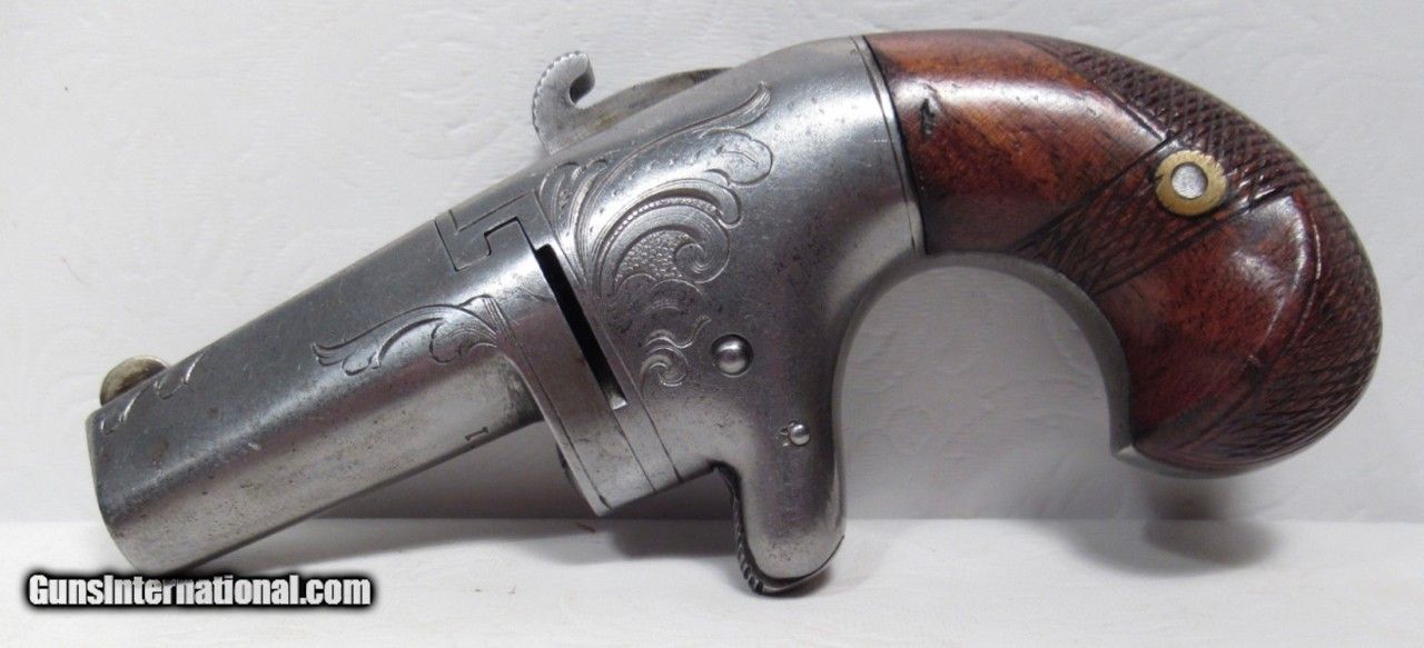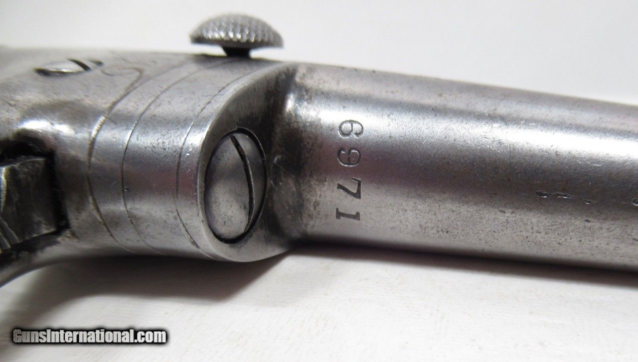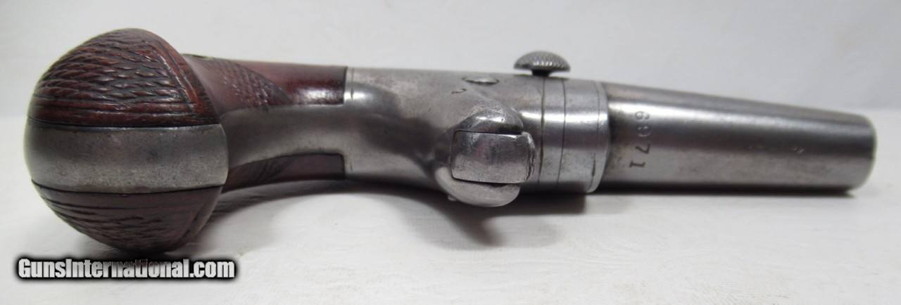 Description: National Arms Co. No. 2 Deringer Pistol; Serial No. 6971; .41 Rimfire Caliber; Scarce 2” Barrel; Mfg. 1865-1870; Iron Frame with Walnut Grips; Fine Original Antique Condition; Excellent Action and Bore; See All Photos for Condition; No Texts; Call (254)541-5765 or Email Only; PERSONAL PROPERTY of Harold Wieser; Price: $1,475 + $45 S&H Via USPS PRIORITY MAIL; Payment Address: Harold Wieser - 1466 U.S. Hwy 77 - Rosebud, TX 76570; SEND PAYMENTS VIA USPS PRIORITY MAIL; BEWARE of SCAMS!!! – DO NOT SEND MONEY or CORRESPONDENTS ELECTRONICALLY UNLESS YOU HAVE SPOKEN to HAROLD WIESER FIRST! 254-541-5765 SOLD Antique: Yes Manufacturer: National Arms Co. Model: Deringer Serial Number: 6971 |