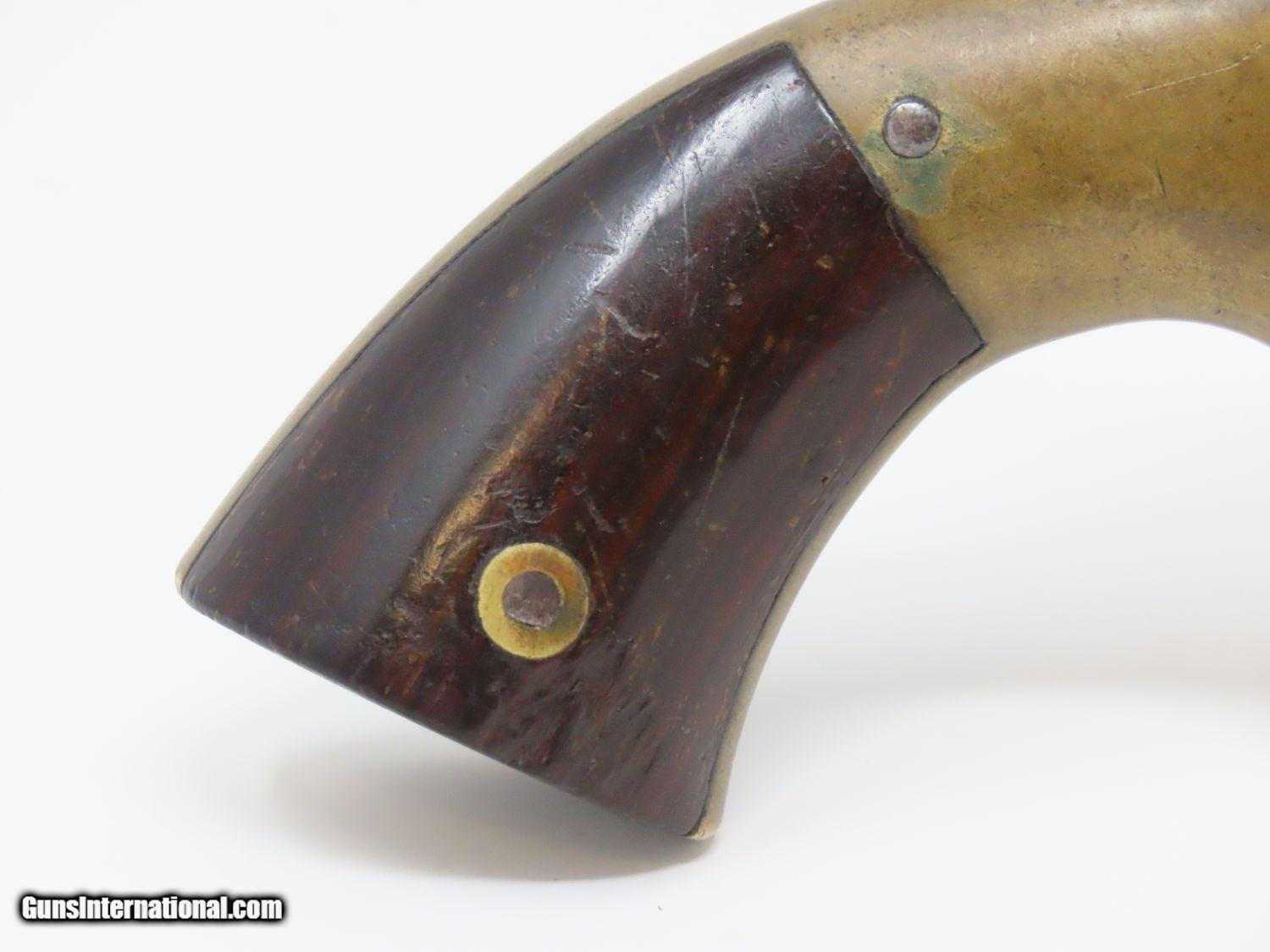 Description: Rare Antique WILLIAM W. MARSTON Three Barrel .32 Caliber DERINGER Pistol UNIQUE 1860s Triple Barrel Superposed Defense Pistol Here we present an antique Wm. W. Marston Three-Barrel .32 Caliber Rimfire Deringer Pistol, made circa 1866 in New York City, New York. Only 3,300 were made between 1858 and 1872. Designed and patented by William Marston in 1857, this 3-shot pistol was one of only a few repeating cartridge pistols during this time. Smith & Wesson bought the Rollin White Patent rights in the same year, which gave them exclusivity over the completely bored through revolver cylinder needed to use metallic cartridges most effectively. The Sharps pepperbox was another unique design that was very successful during the period before S&W’s patent expired. Like Sharps, Marston utilized multiple barrels that were superposed to make a barrel cluster, as well as an oscillating firing pin to hit each cartridge in succession. The barrel cluster hinges down for loading and unloading, using a very simple fixed claw system for extraction. There was a chamber indicator on the right side of the gun that enabled the shooter to set the firing pin to the first barrel, and let the shooter know which barrel it wason if they fired it. The firing pin would simply travel to the next barrel. With a firearm this unique, ingenious and rare, it is no wonder why collectors love them. The overall condition is good. The action remains strong. Although, the firing pin has been removed. The dial rotates as it should when the hammer is cocked, and is a very neat feature! The bores are semi-bright with strong rifling. The markings are clear. With a “steam-punk” style of auto-indexing, 3-barrels, and a pocket deringer look, this rare little pistol is a gem! Own the original! This is a legitimate antique and not a reproduction. Barrel is 3 inches. Caliber: .32 rimfire Overall condition as seen in photos. Very Fast. Very Safe. FREE SHIPPING WORLDWIDE. Delivered directly to your door by express mail! Guaranteed AUTHENTIC & Includes CERTIFICATE OF AUTHENTICITY. ancestryguns $1795 #20275 SOLD Antique: Yes |