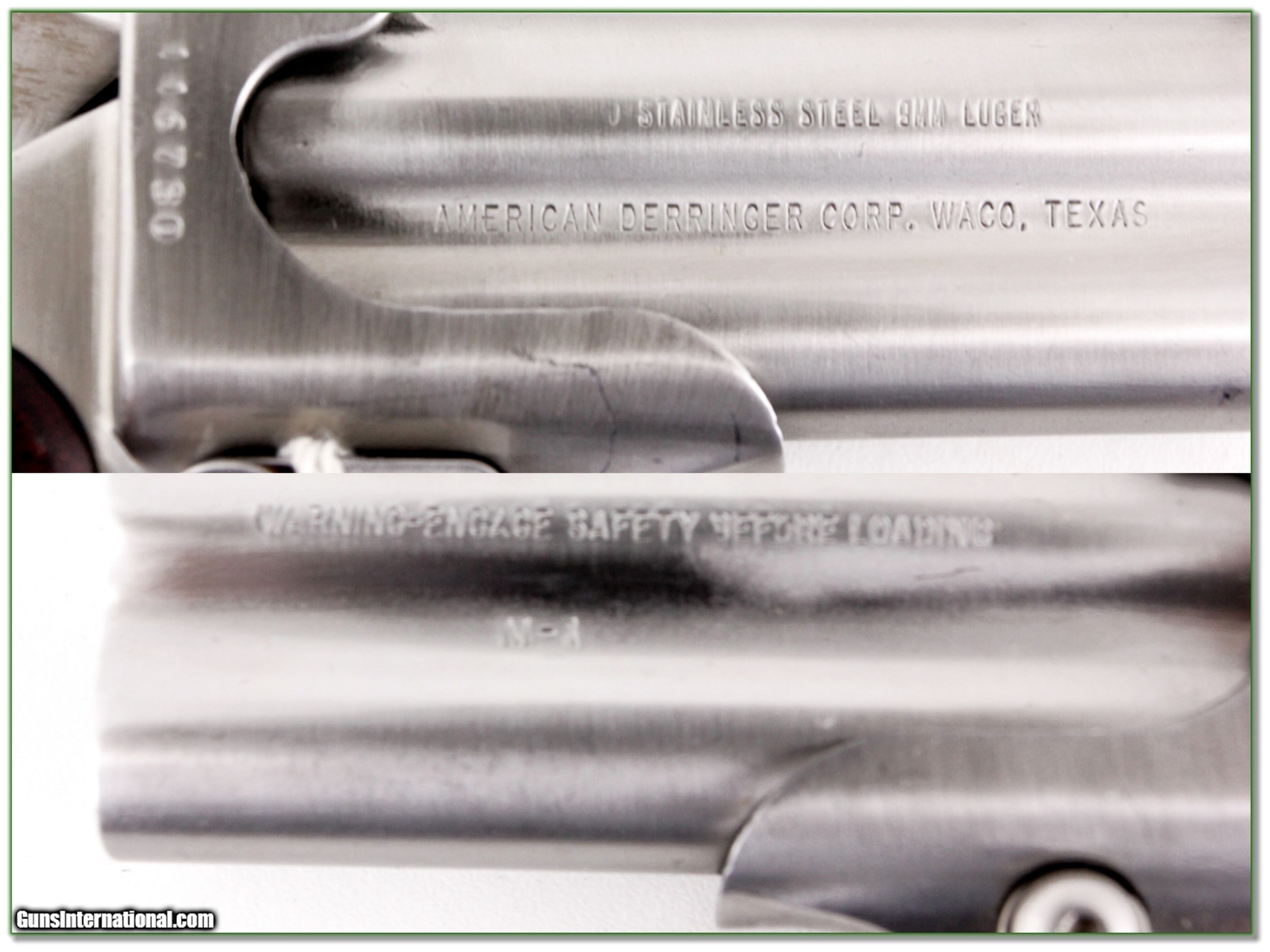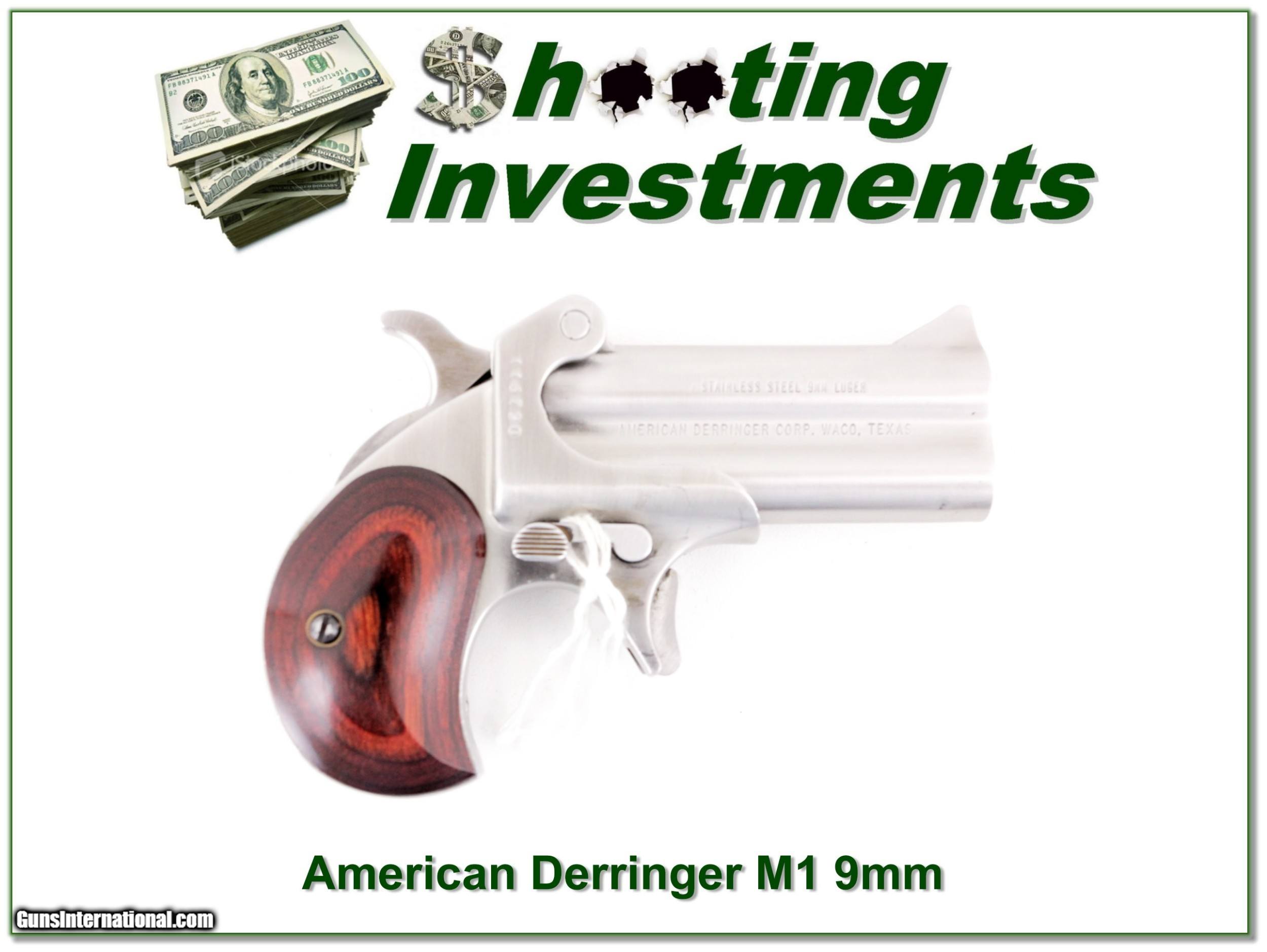 Description: This is an excellent condition American Derringer. It is a very hard to find 9mm. I am selling this one on consignment and as such lay-a-way can’t be used. It does of course have the standard 3-day inspection. Shipping and insurance is $39. Please email me with any questions or larger pictures. (Consign your quality firearms with Shooting Investments for only 12%! Let me know if you have any you would like to sell!) 18-0625 Payment: Payment is by Money Order, Cashiers Check or Personal Check. I can now also accept MasterCard and Visa with a 3% convenience fee. PayPal can be used for some items but never firearms. Please let us know if you would like to pay via PayPal. Shipping: The shipping charge will be listed in each description. It is $39 for most long guns and $29 for most handguns. Some heavy guns or those insured for over $2000 will be higher. Shipments to Alaska and Hawaii are higher because air shipment is required. Most firearms are shipped on Tuesday and Thursday and usually in 5 days of receipt of payment. We package all shipments carefully and insure them. For long guns you can purchase a new Plano case for $19. They now cost us $22 when buying 100 at a time. Optics are shipped Priority Mail and most other non-firearm shipments are shipped First Class. Returns: Our return policy is simple. If for any reason you are not pleased with your purchase, you may return your item for a full refund of purchase price. Ammunition cannot be returned. It is important to us that you are happy. Guns cannot be fired or dissembled before returning them and they must be returned in the same condition as received. Notification of a return must occur with-in 3 days of receipt at your dealer. Shipping, convenience and dealer fees are not refundable and are the responsibility of the buyer. Lay-a-way: If needed, we offer a 60 day lay-a-way option on most firearms. It is 1/3 now, 1/3 in 30 days and 1/3 in 60 days. Lay-a-way firearm sales are final and if not completed the first payment cannot be returned. Consigning your firearms with Shooting Investments: We will help you get top dollar for your firearms. While most local guns shops charge 20% or more, our fee is only 12% with a minimum of $75. At your local gun shop it might take months to sell. Selling on-line provides instant access to thousands of interested buyers. You won’t find any other on-line dealer willing to sell your firearms for only 12% or listing every gun on 3 separate s. Selling through an House typically costs the seller 15% and the buyer an addition 15% (so 30%) and you have to wait several months to sell and longer to receive funds. If properly priced, we will sell your firearms in a few weeks. Send us an email or give us a call and we’ll explain how easy it is for you to get top dollar. Trading: Trading for use is really just buying your gun to re-sell. If you have a gun you want to trade, please email a picture and we will let you know what we can give or it. You will always get more if we sell it for you on consignment. Help for California Buyers: We are happy to ship to California. It is the buyer’s responsibility to make sure any item you buy is legal in your state. We are also happy to help with your purchase of a firearm from someone other than us. If you see a gun you would like to buy but the seller can’t or won’t ship to California they can ship to use and we’ll then ship it to your California dealer. The cost for this service is only $30 + shipping. Let us know if we can help! SOLD |