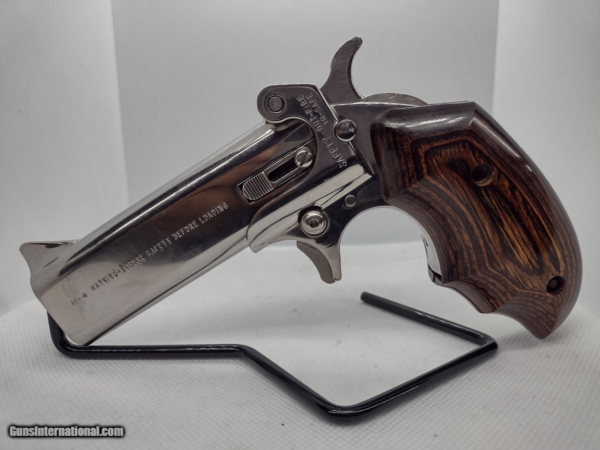 Description: Guns Listing ID: 521679 GUN IS IN EXCELLENT CONDITION NO MISSING OR DAMAGED PARTS SEE PHOTOS FOR CONDITION COMES WITH SOFT CASE FROM UNCLE MIKE‚‚S SOLD Manufacturer: AMERICAN DERRINGER CORPORATION Model: M-4 Caliber Info: .44 MAGNUM Condition: Used - Non-Certified Barrels: 4 Action: SINGLE SHOT Finish: polished stainless |