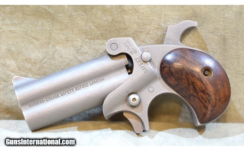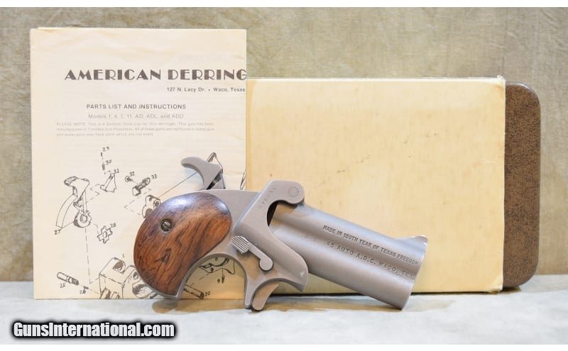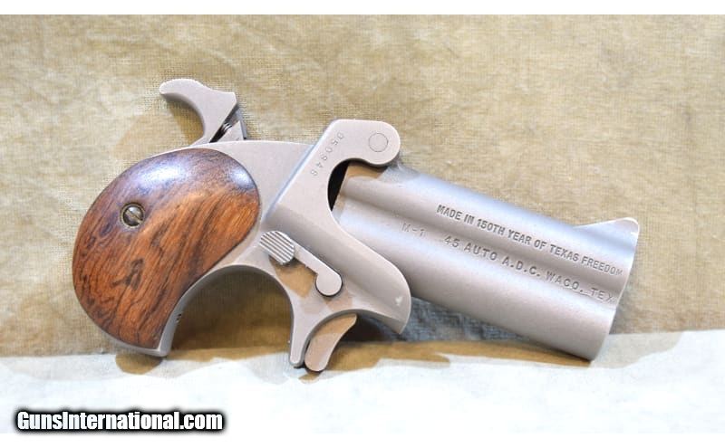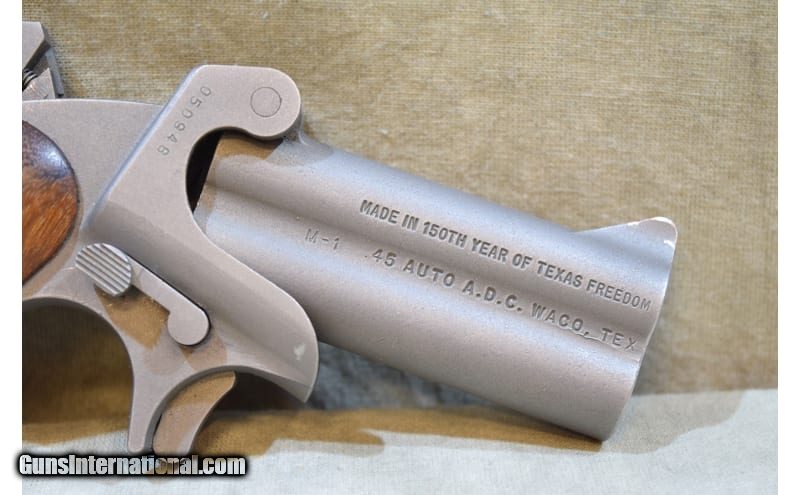 Description: American Derringer model M-1 is a small 2 barrel pistol chambered in .45 Auto in excellent condition. The Derringer's barrel is stamped with "Made in the 150th year of Texas Freedom" aka 2015. .45 Auto SOLD Metal Condition: Excellent Bore Condition: Bright and Shiny Barrels: .45 auto Weight: 2 lbs Sights: Fixed Front Sight Item Location: Chesterfield, MI |