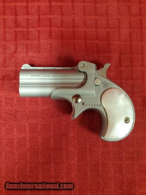 Description: Guns Listing ID: 509254 BEARMAN CL22L CLASSIC - .22 LR - 2 ROUNDS - 2.25 \" with Pearl grips Manufacturer: BEARMAN Model: CL22L Caliber: .22LR Magazines: N/A Sights: FIXED Weight: 11OZ Overall Length: 4\" Barrel Length: 2.25\" SERIAL NUMBER: 1336787 SKU NUMBER: DJ1024024 SOLD Manufacturer: BEARMAN Model: CL22L CLASSIC Caliber Info: .22 LR Condition: Used - Non-Certified Barrels: 2.25 Action: OVER/UNDER Finish: matte stainless |