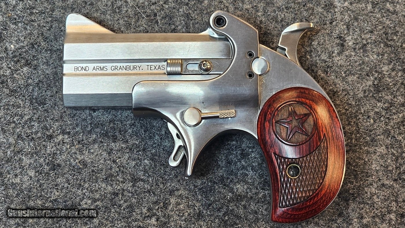 Description: Guns Listing ID: 600032 THIS USED BOND ARMS COWBOY DEFENDER MODEL IN .357 MAG IS IN BEAUTIFUL CONDITION WITH VERY MINOR SCRATCHES Manufacturer: BOND ARMS Model: COWBOY IN .357 Caliber Info: .357 MAG Condition: Used - Non-Certified Barrels: 3" BARREL Action: OVER/UNDER Finish: polished stainless Price: $499.99 Contact Seller |
