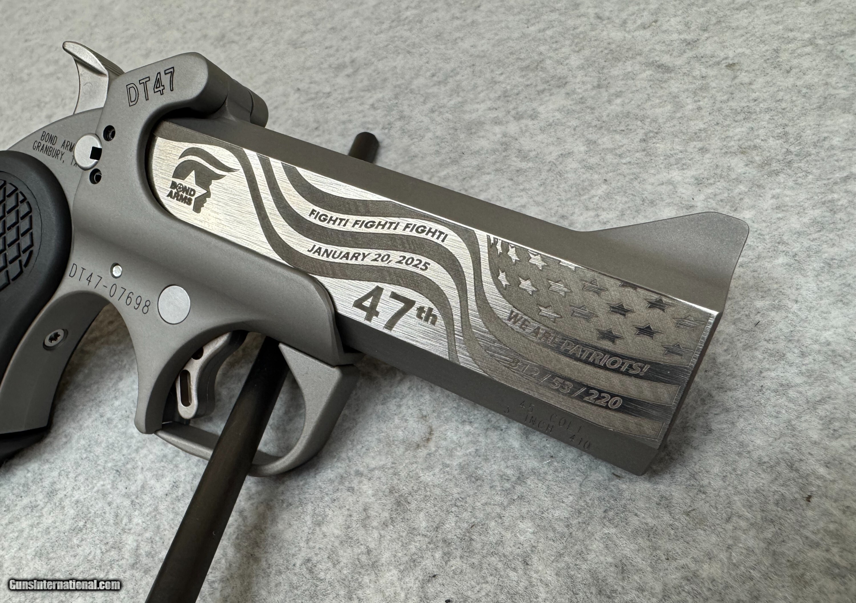 Description: Bond Arms DT47 45LC/.410, new in box. Please call 585-343-1474 foer more information or to purchase. Shippin $45 Handgun Caliber: .45 Colt Shotgun Gauge: .410 Gauge Manufacturer: Bond Arms Model: DT47 Price: $450.00 Contact Seller |