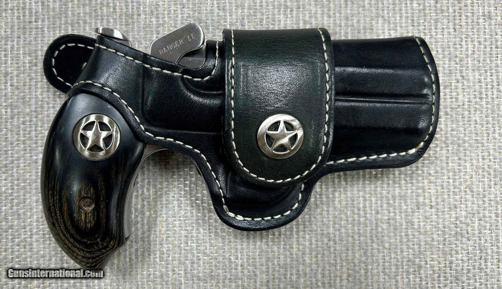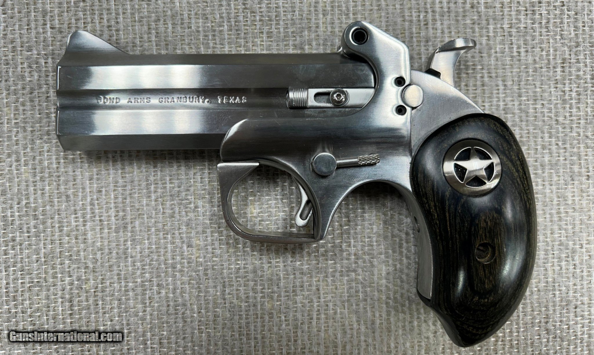 Description: Guns Listing ID: 597113 Used, in excellent condition Bond Arms Ranger II. An extended black ash grip features a metal lone star badge. Features a 4.25" barrel chambered to fire up to 3" .410 shot shells and .45 Colt. Includes a black Ranger II driving holster. Manufacturer: BOND ARMS Model: Ranger II Caliber Info: .45 LC/.410 GA Condition: Used - Non-Certified Barrels: 4.25" BARREL Action: OVER/UNDER Finish: STAINLESS Weight: 1.3 LBS. Price: $699.99 Contact Seller |