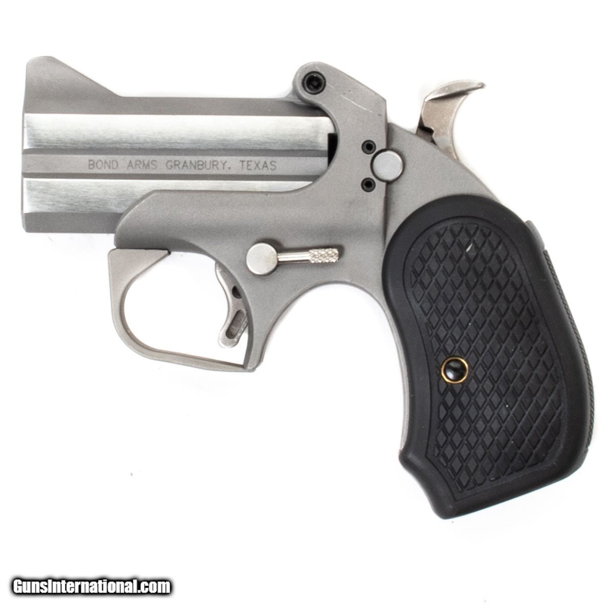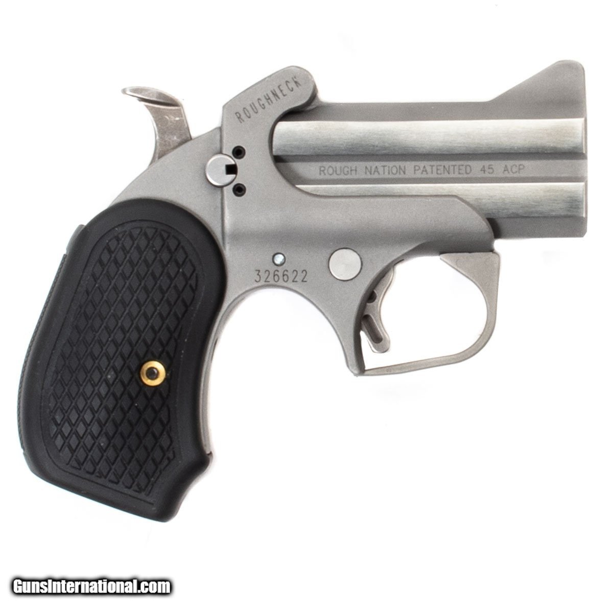 Description: Guns Listing ID: 603310 The Bond Arms Roughneck .45 ACP double barreled derringer is an affordable yet effective handgun for point blank personal protection. Derringers hit the market in the 1800’s and were a favorite among card players for their easy to conceal nature. It may be an old design but the premise of a personal protection, easily concealable sidearm still rings true today. Get the best bang for your buck when you get a Certified Used Firearm . When you see the Certified Used stamp on any of our firearms, you can be confident that you‚re getting exactly what you want – a gun only in very good to excellent condition and held to the highest quality standard. All Certified Used Guns come with a ‚no questions asked‚ return policy . Manufacturer: BOND ARMS Model: ROUGHNECK Caliber Info: .45 ACP Condition: Used - Certified Barrels: 3.0" BARREL Action: OVER/UNDER Finish: stainless Weight: 1.2 LBS Price: $289.99 Contact Seller |