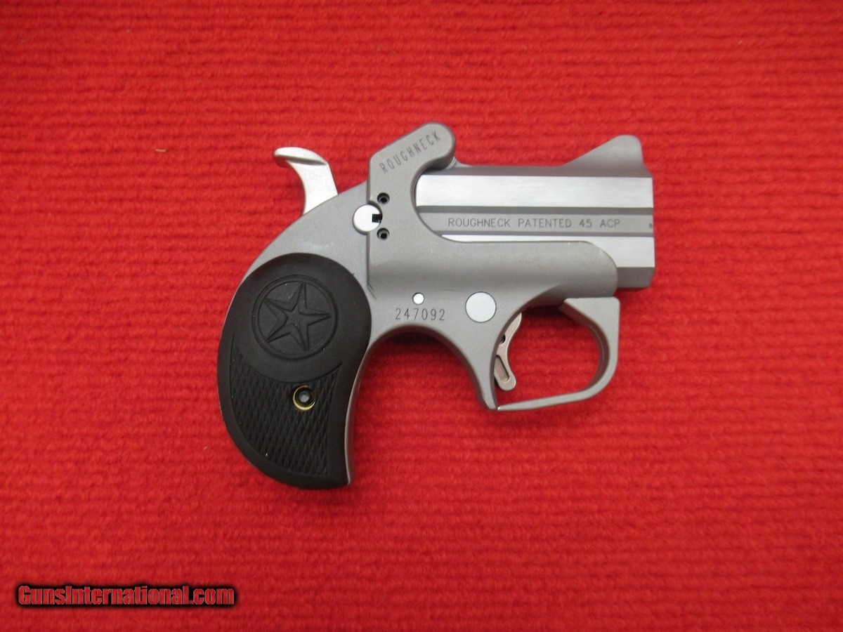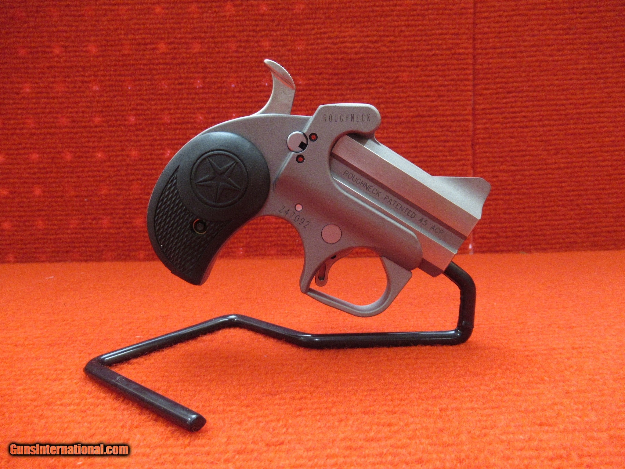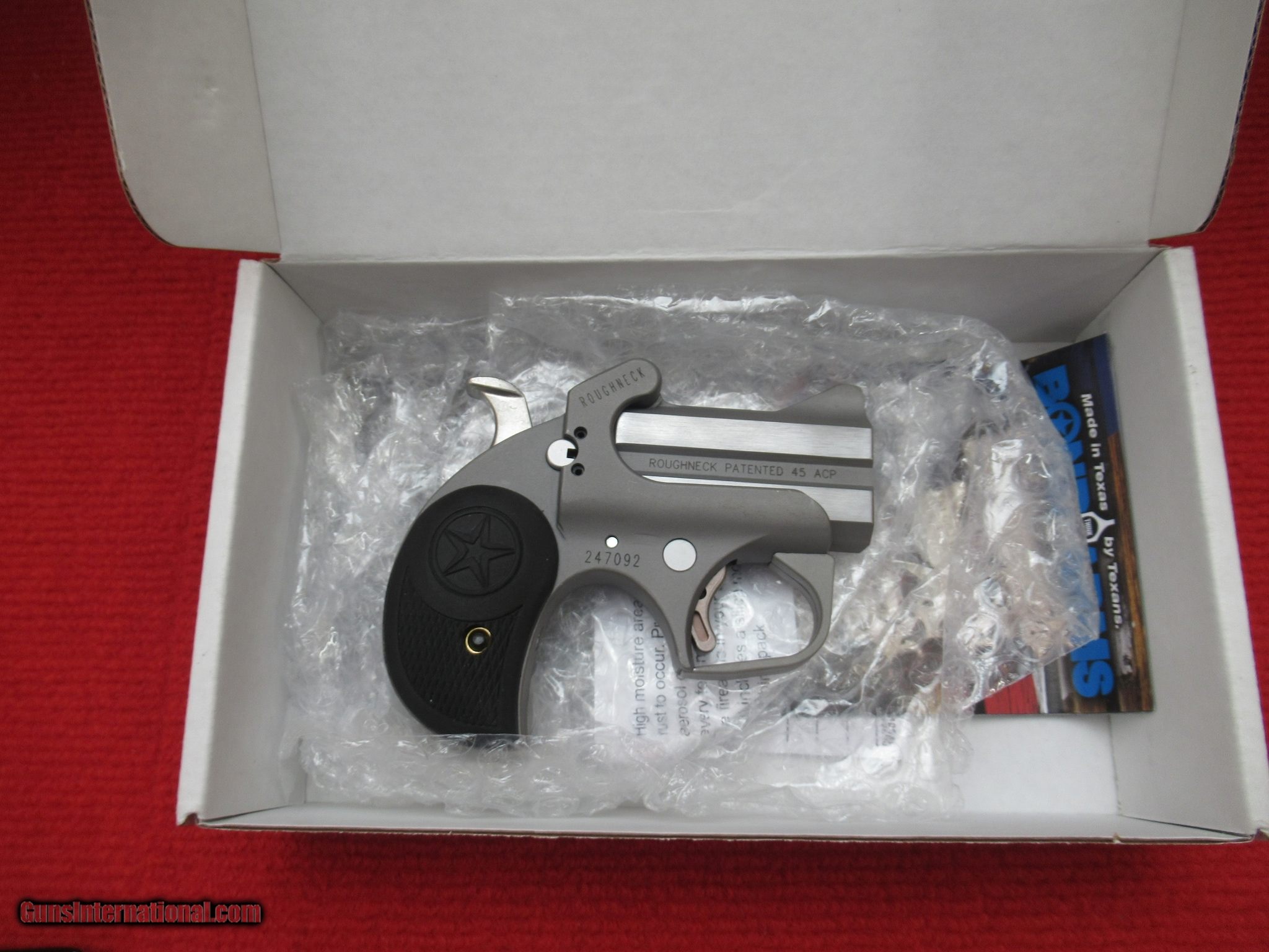 Description: Guns Listing ID: 355498 #589 Gun is in like new condition. Gun comes in its original box with all original paperwork. Gun has never been fired. SOLD Manufacturer: BOND ARMS Model: ROUGHNECK Caliber Info: 45 ACP Condition: Used - Non-Certified Barrels: 2.5 BARREL |