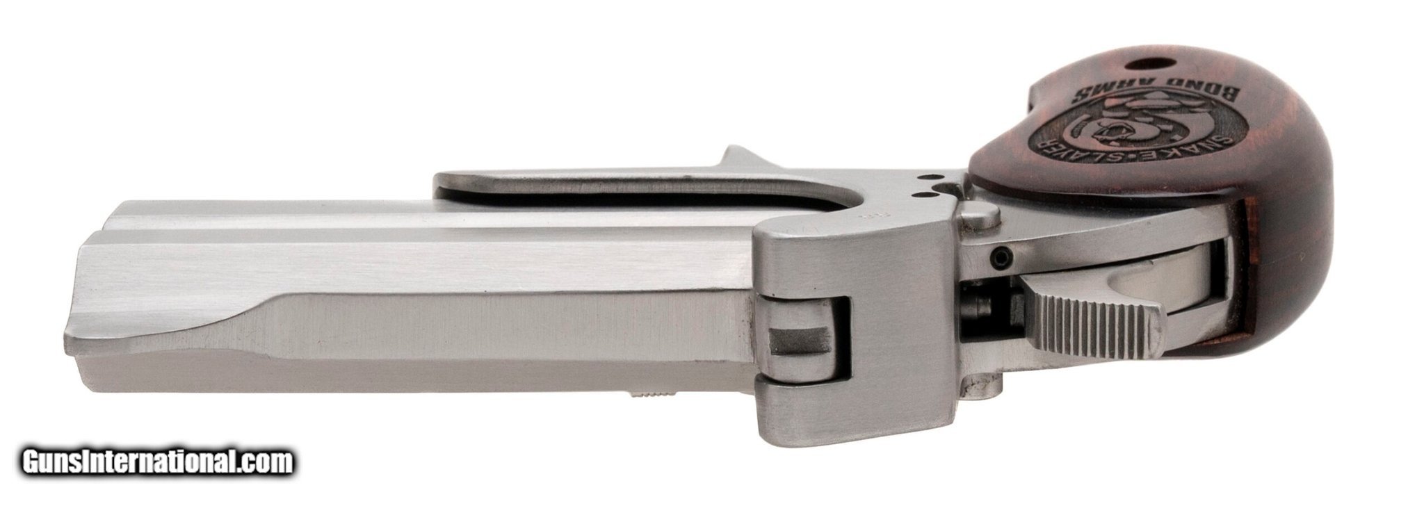 Description: Guns Listing ID: 585330 SN: 39959. Modern production, .45Colt/.410 Gauge with 3.5\" barrels chambered for 3\" shells. Bores are excellent. Single-action derringer with stainless steel frame and carved wood grips. Finish shows handling wear. Overall condition is very good. (L2025-08459) Manufacturer: BOND ARMS Model: SNAKE SLAYER Caliber Info: .45 LC/.410 GA Condition: Used - Non-Certified Barrels: 3.5" BARREL Action: OVER/UNDER Finish: stainless steel Price: $525.99 Contact Seller |