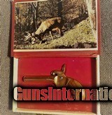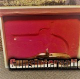 Description: Rare Turner Kirkland Rare Turner Kirkland 41 Brass Framed Derringer Description: This is a very rare unfired Turner Kirkland 41 caliber percussion Brass Framed Derringer in original Mississippi River Law Book Box on the spine it states T. Edwards Kirkland. This fine little percussion derringer was popular with gamblers on the Mississippi River as a hideout gun. It was very deadly at close ranges but small enough to fit into vest pocket or a coat sleeve. 2-piece European walnut grips with brass frame. .41caliber smoothbore. Percussion #11 caps. No sights. Gun is in 100% condition in the presentation book box. See all the pictures if you need more info please e-mail. Shipping $20.00 Non-FFL Firearm. SOLD Curio/Relic: Yes Manufacturer: Turner Kirkland 41 Caliber Brass Framed Derringer Model: 41 Caliber Brass Framed Derringer Caliber Info: 41 Condition: As new Metal Condition: 99% Wood Condition: 99% Bore Condition: New Barrels: Single |