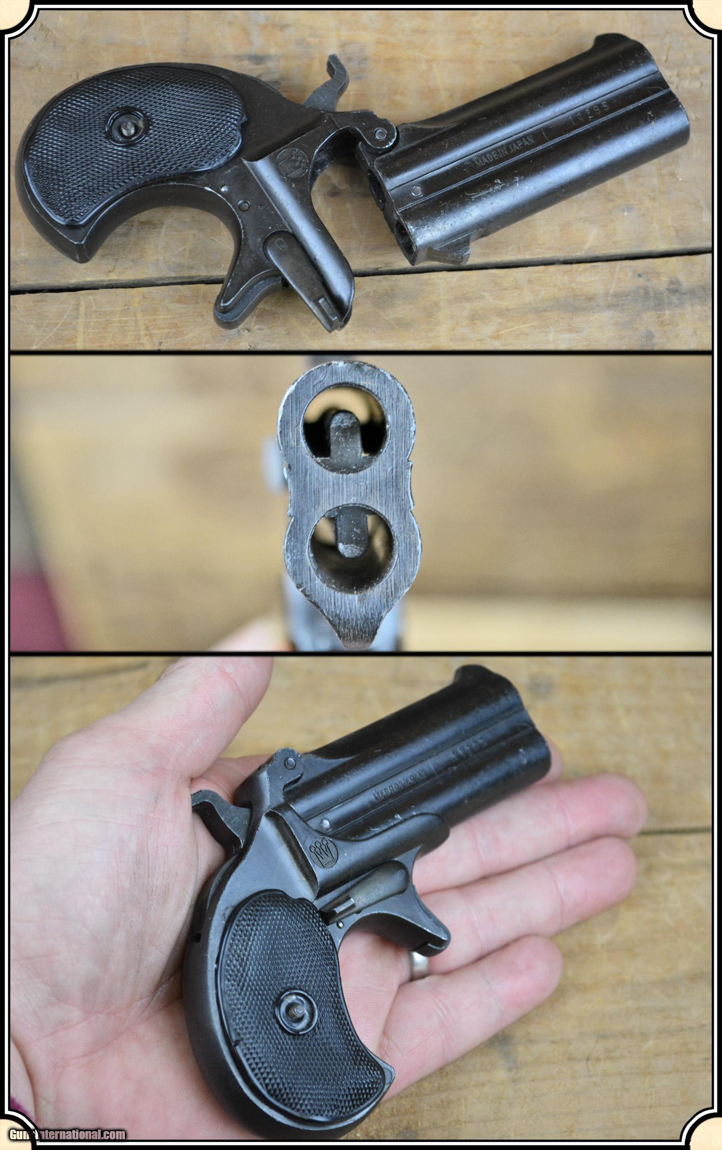 Description: This movie prop gun is a very accurate recreation of the famous Remington derringer. A very rare vintage replica non-firing gun manufactured by MGC (MODEL GUN CORP), Japan, made of zinc alloy metal, in excellent working condition. It is an exact functioning replica. It was produced in the 1950's and measures approx. 5 1/4" inches over all in length, and has the same weight , feel, and action of the original Remington, but cannot be made to fire real ammunition. The barrel is 2 3/4" in length. The grips have no cracks or chips and the black finish is not worn or scratched. It is marked made in Japan and has a serial number 11295 on the right side of the barrel. This full size replica is very accurate copy of the legendary frontier derringer and is marked "FRONTIER DERRINGER" on the top of the barrel. You can cock the hammer and dry fire it and the shell ejector works. Both barrels are plugged so it is impossible to load real ammunition. These sell for about $200.00 in the U.K. and are very hard to find. Payment Cash, postal money order, cashiers check, personal & business checks. Can be ordered with a credit card or paypal at wxx.riverjunction,cxx just type in the number 4357 in the search box. SOLD |