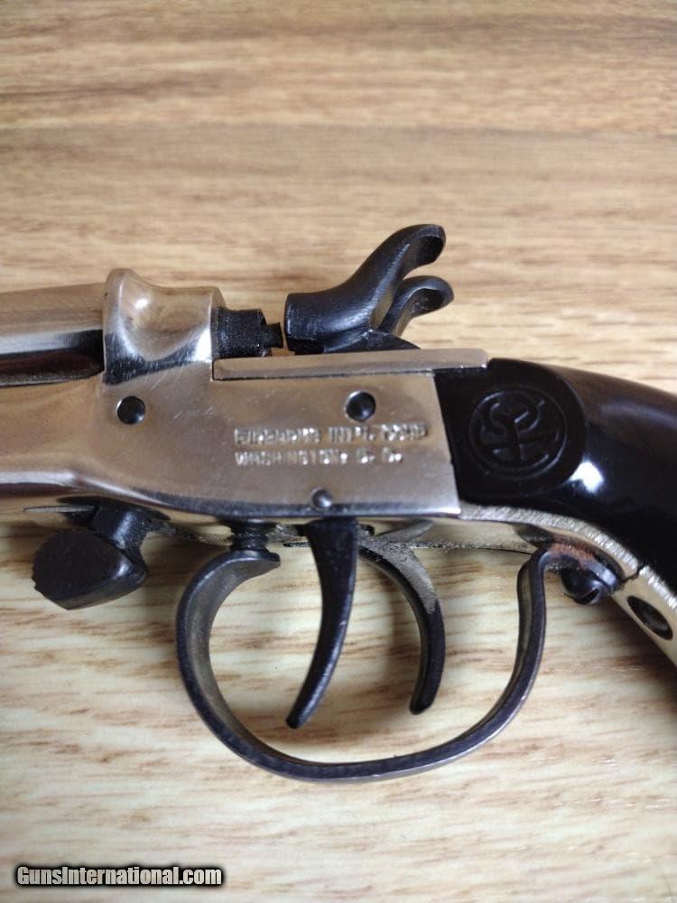 Description: Guns Listing ID: 552825 PISTOL: ROSSI FIREARM MODEL .22CAL, SERIAL NUMBER E315520, DERRINGER, 22 SHORT (22S), NICKEL, BLACK GRIPS, NO HOLSTER OR CASE, 3 INCH BARREL SOLD Manufacturer: ROSSI Model: side by side Caliber Info: .22 LR Condition: Used - Non-Certified Barrels: 2.75 BARREL Finish: STAINLESS AND BLACK |