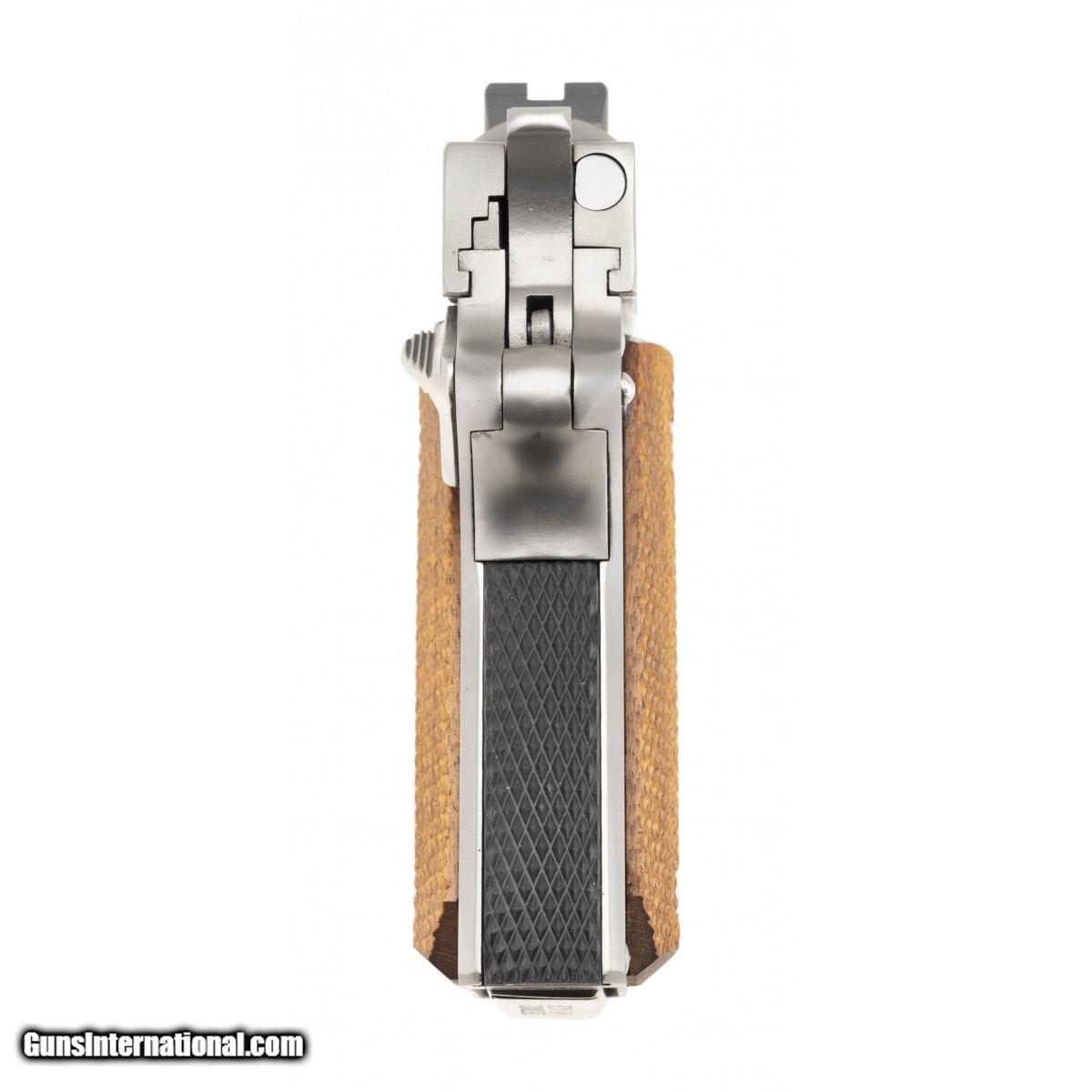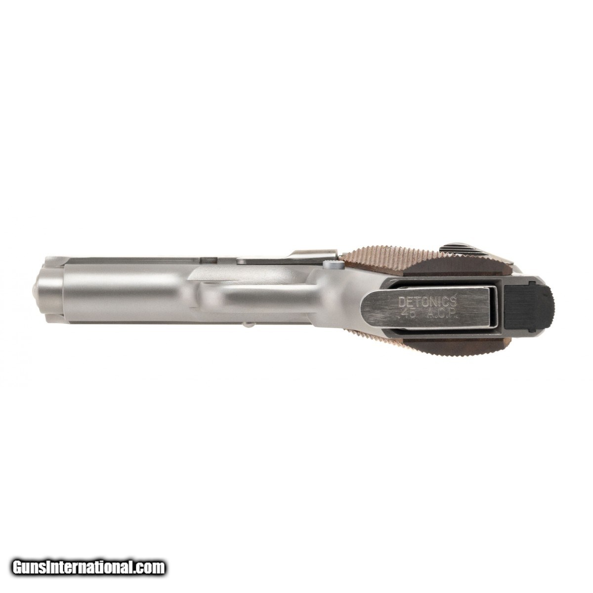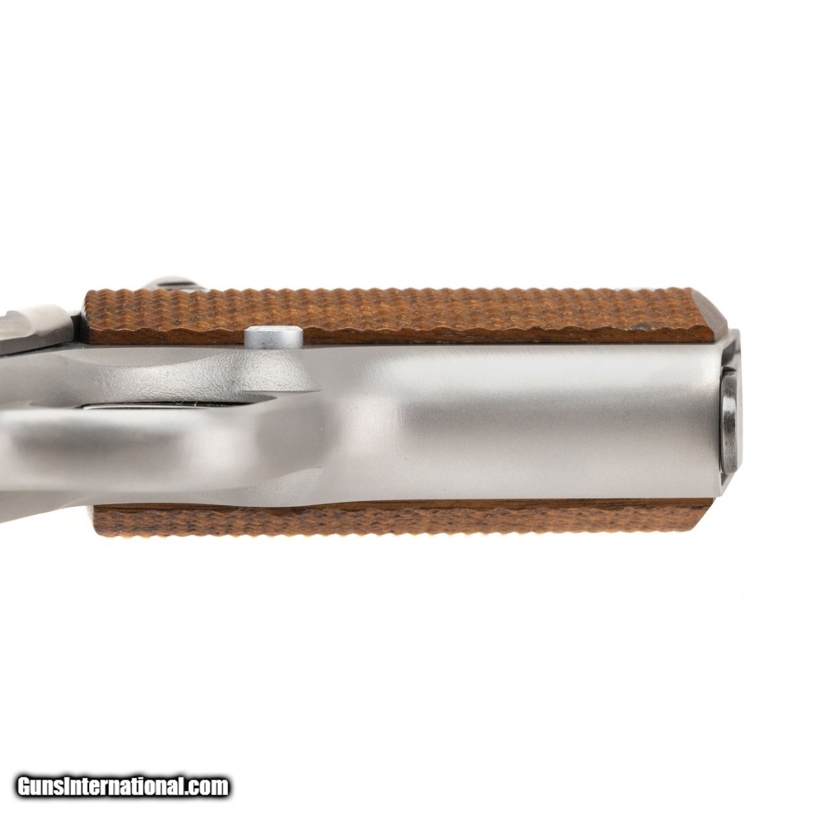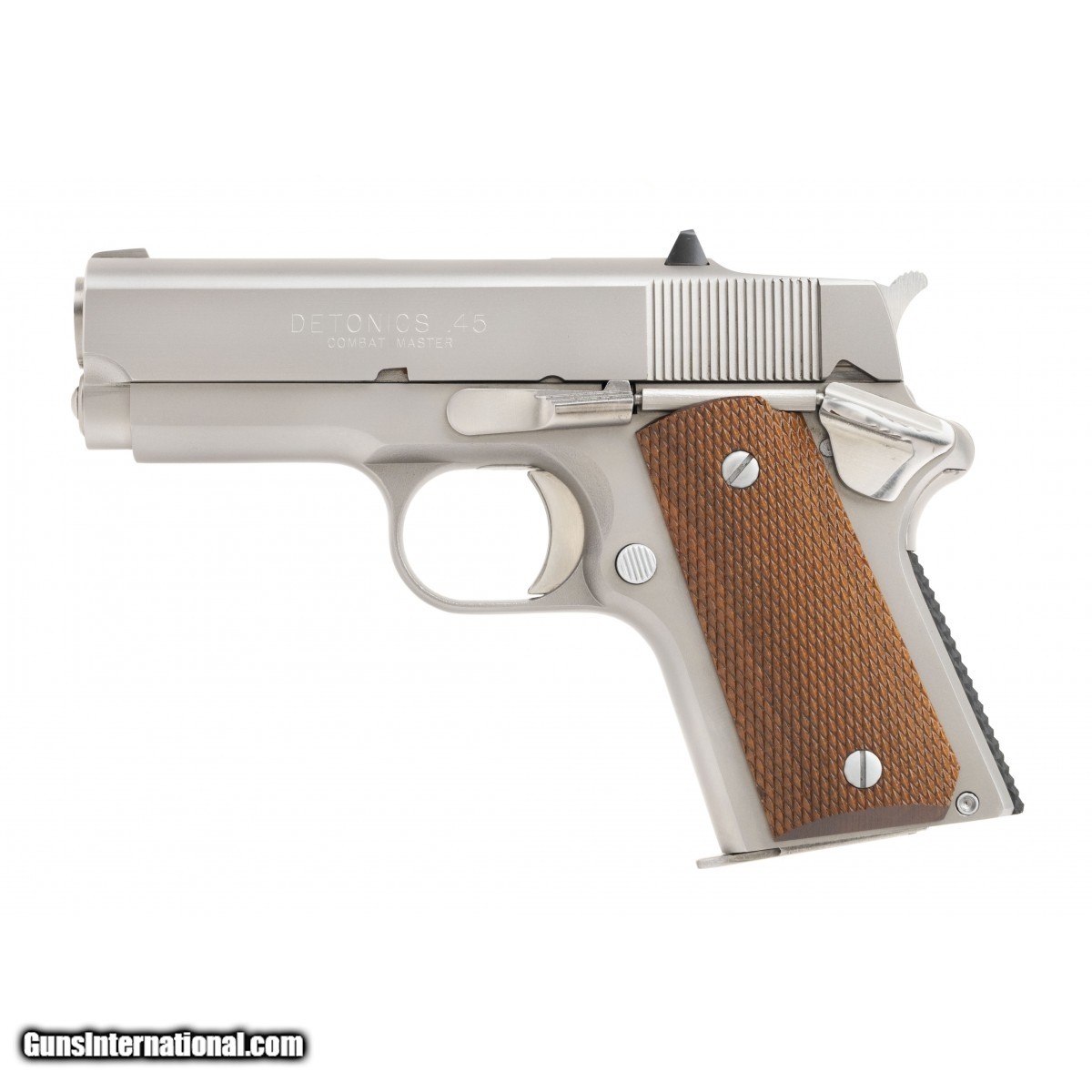 The original subcompact 1911, made in Seattle. Stainless steel with wood grips, in excellent condition. Comes with original Detonics pouch. A very desirable Detonics pistol, hard to find in this condition.