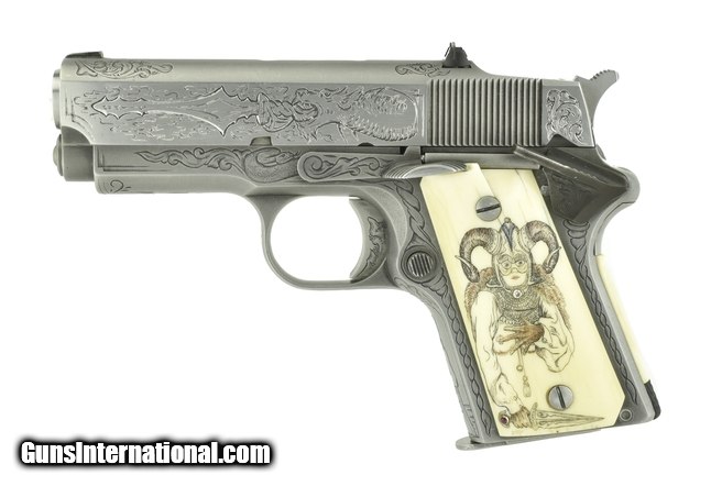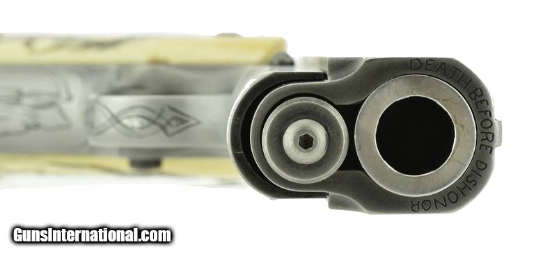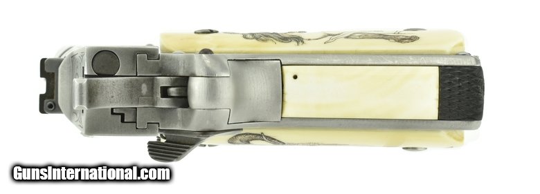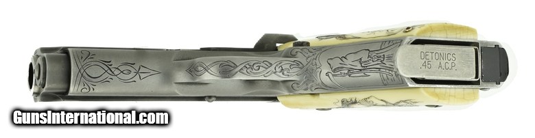 Description: Detonics Combat Master .45 ACP caliber pistol. Beautiful custom engraved Detonics. Has fantasy themed scenes on the gun & carved in grips, which are genuine Ivory. A fancy piece! SOLD |