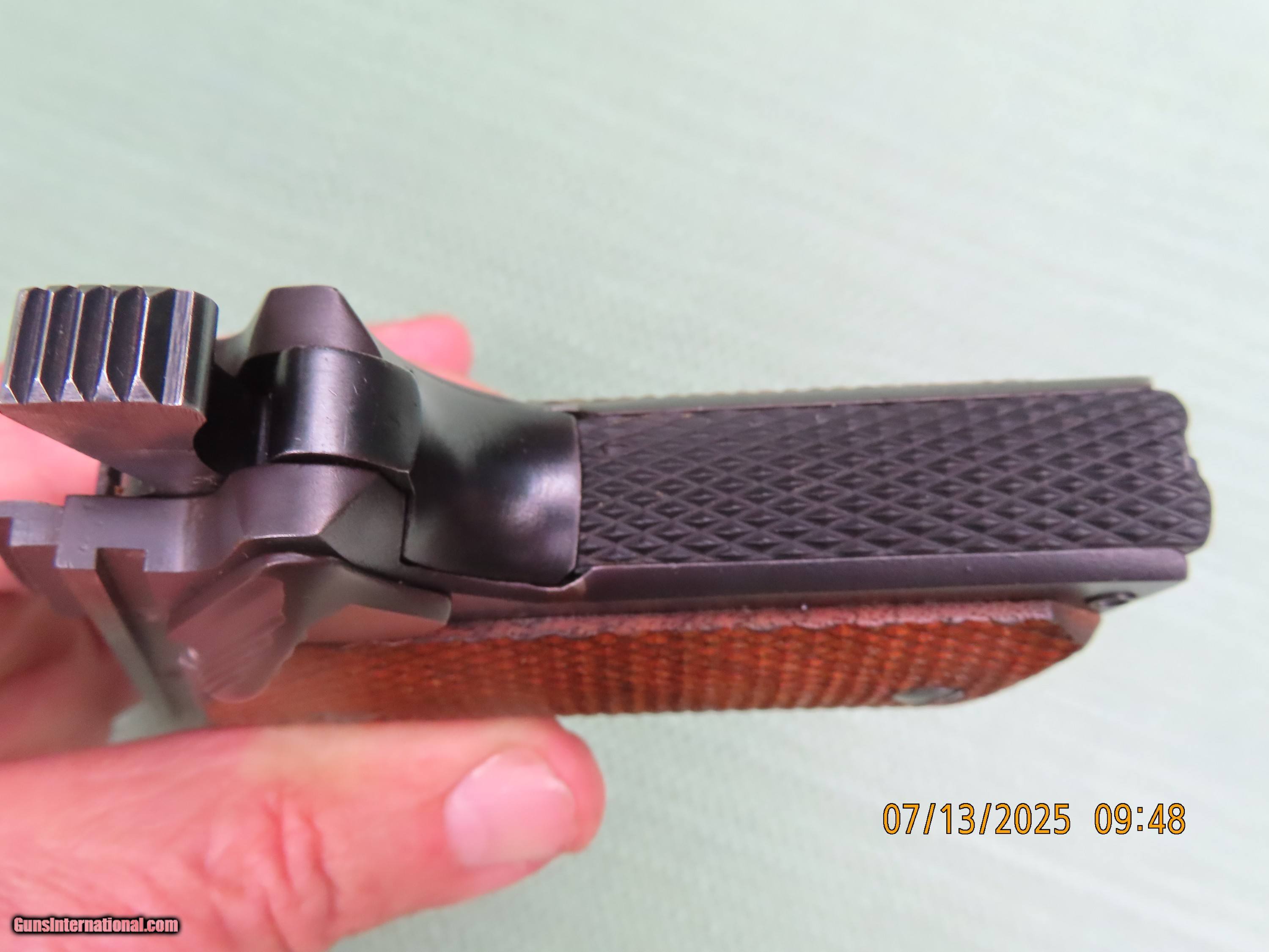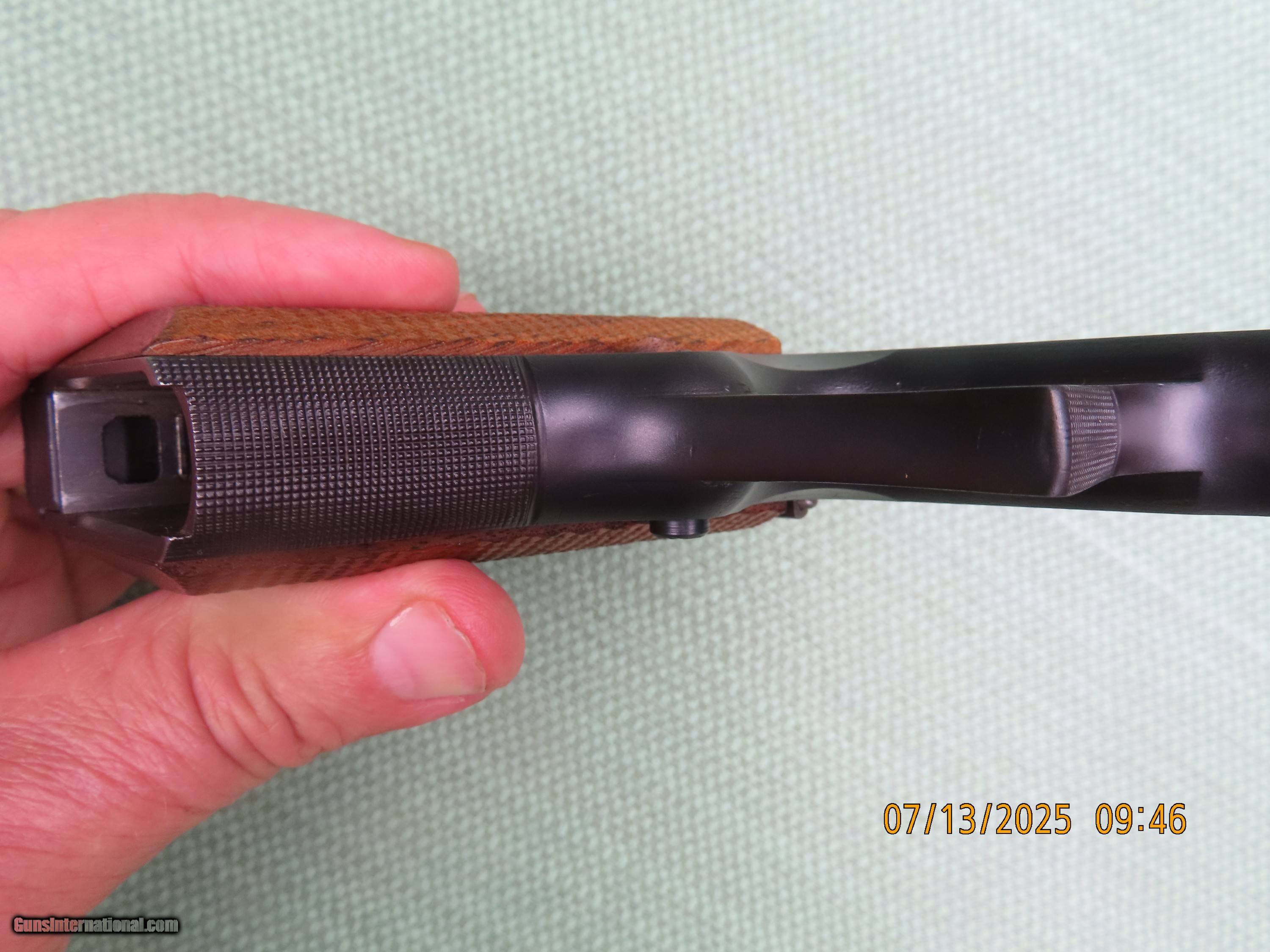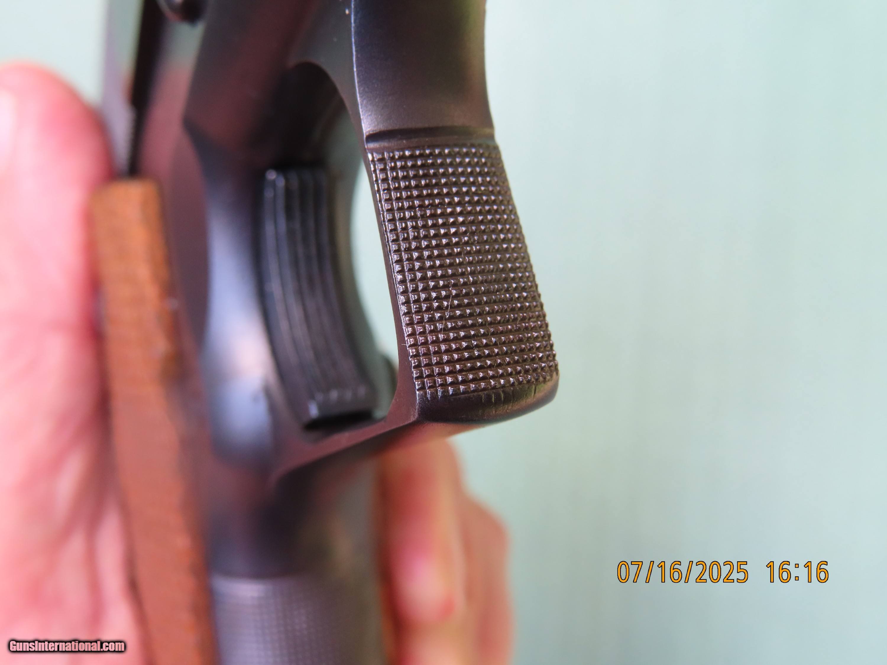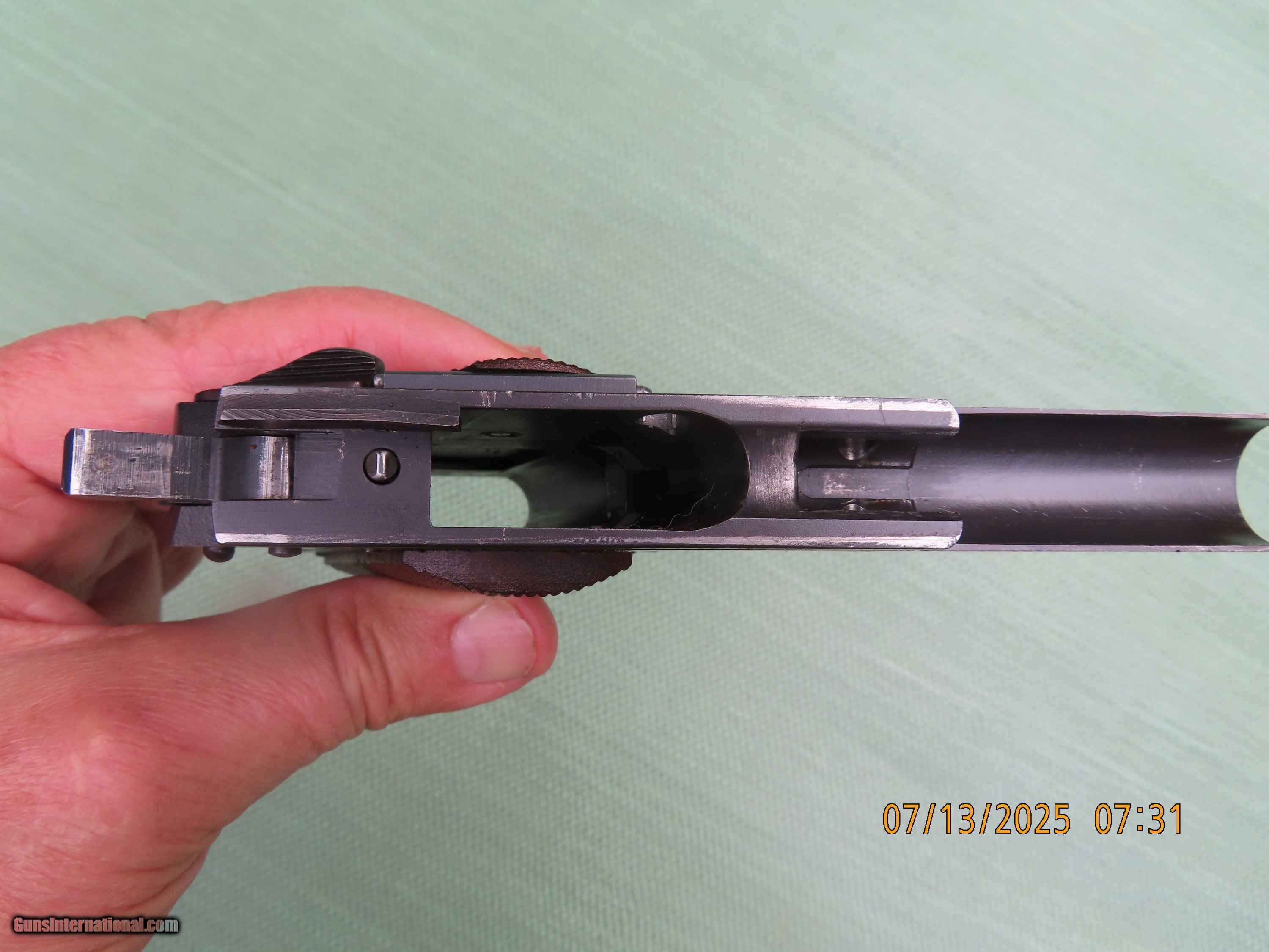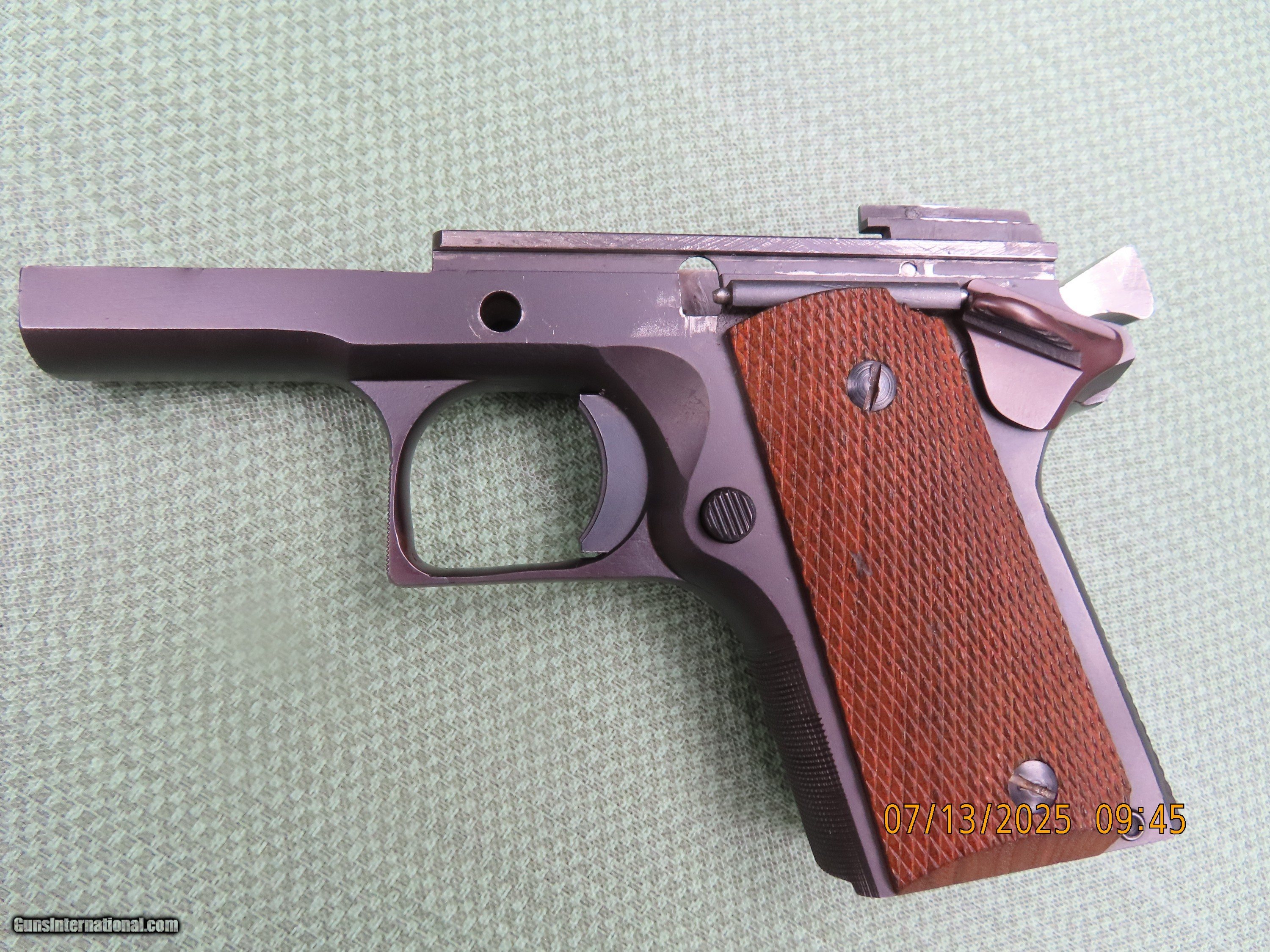Description: The Detonics Combat Master is well known as the first reliable compact .45 ACP pistol that was smaller than the Colt Commander. I am not an expert on these firearms, but this example is what may be a 1st year production MkI. Serial numbers and production years are very sketchy on this. The serial range of production guns started at serial number 2000. As Detonics collectors know the early production Combat Masters were customized from secondary supplier sources such as Essex and Caspian. The markings on the pistol are as follows (See pictures): Left side of slide: DETONICS .45 Right side of slide is blank Left side of frame is blank Right side of frame: DETONICS ASSOCS. SEATLE, WA. Serial Number: 2870 Under right grip panel the number “40” in a circle Barrel is unmarked There does not appear to be any markings on the inside of the frame or inside of the slide. Please note knurled squared trigger guard. This appears to be somewhat unique as I have only seen one other example. However, I have seen a number of different features on the early production pistols. Enough to make me think that perhaps factory production workers were given some leeway in the features that were incorporated on these early pistols. The finish on this gun appears to be identical to images of other similarly serial numbered guns on the internet and or sites. I estimate the finish at 95% plus. The bore is very clear and bright. The 6 round magazine appears to be original factory. The original factory case and manual are included. I try to give a fair representation of the items or firearm for sale. If you have any questions please contact me either by email, or cell phone. I don’t consider my cell phone as another appendage to my body. So if I don’t answer please leave a voice mail. Items and firearms are sold “as is”. However, if there is a material error in the pictures or description I will refund the purchase price less the shipping cost. Again, please read the description and look closely at the pictures. The buyer is responsible for return shipping cost, and the return of the item, or firearm in the same condition as sent. Check your local and state firearms laws with your FFL before you bid/contact me. Shipping from my FFL to your FFL is $40.00. Payment is to be made with a USPS money order or personal check with condition that the check clears my bank before I ship. Reasonable offers will be considered. SOLD Handgun Caliber: .45 ACP (.45 Auto) |