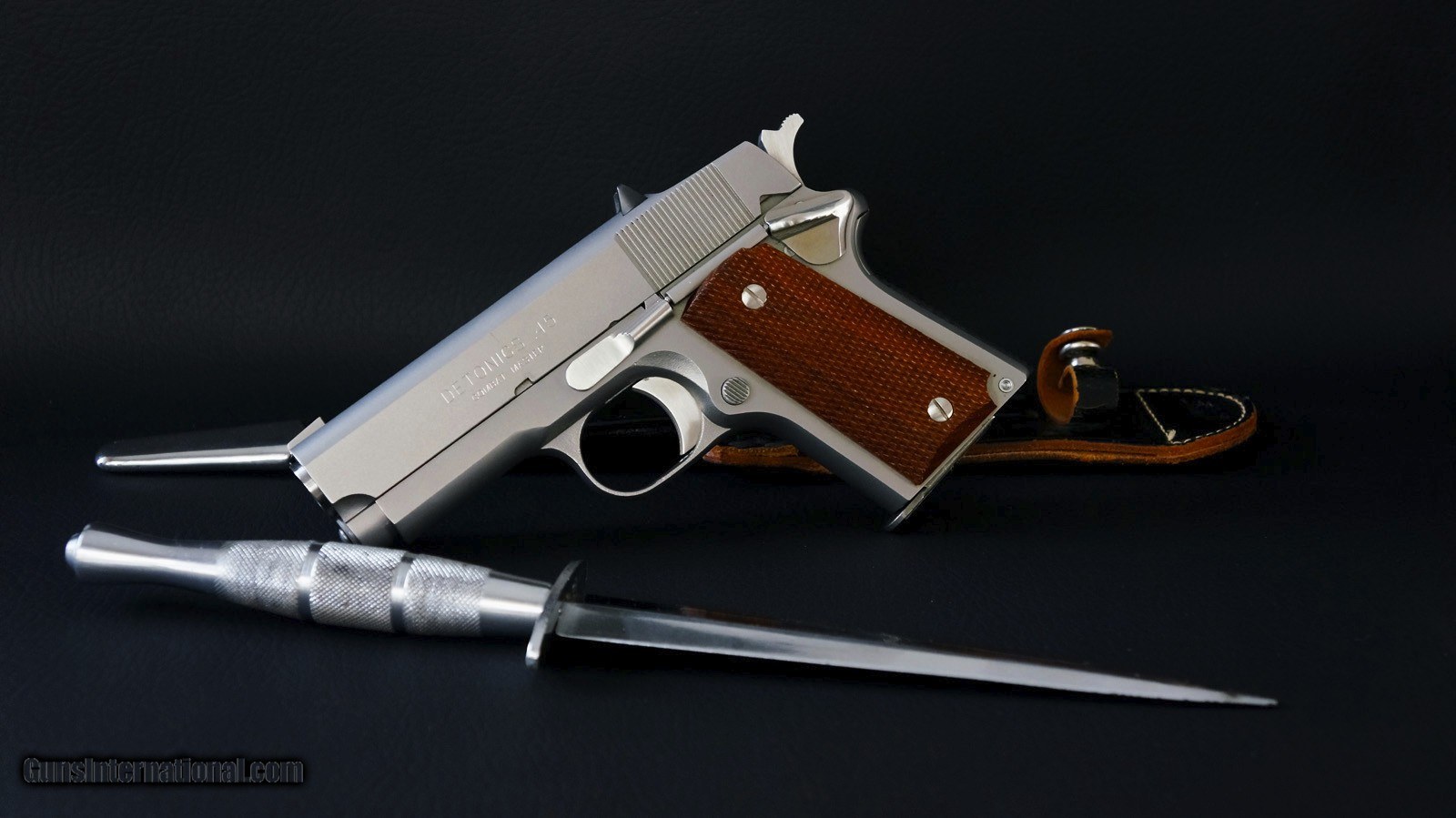 Description: *** SOLD *** Gen. Mitch WerBell – The Spy You Never Heard Of A Special Presentation Detonics Combat Master .45 and Fairbairn-Sykes fighting blade belonging to famed OSS Officer Gen. M. WerBell Manufacturer: Detonics Model: Combat Master Caliber: .45 ACP Bore: Excellent Condition: Excellent Metal Condition: Excellent This presentation pistol and knife belonged to famed OSS Officer and Soldier of Fortune, Gen. Mitch WerBell. It has remained in the WerBell estate since his death in 1983 until recently when they were transferred through a private sale. Both pieces bear inscriptions to Gen. WerBell. The pistol was gifted as a dedication from the owners of the original Detonics Corp. The F/S Commando knife was a gift to the Gen. by a colleague and Special Forces soldier. The Combat Master remains in NRA excellent, unfired condition. The knife and sheath both in excellent condition, the blade has not been sharpened. The pstol is factory inscribed; "MADE ESPECIALLY FOR General Werbell" The F/S knife inscribed "TO: MITCH WER BELL FROM: WILLIE PETER ROMFH 5TH SPECIAL FORCES GROUP VIETNAM". Synopsis from - Spartacus-Educational/JFKWerbell.htm Mitchell WerBell, the son of a former Czarist Calvary officer, was born in Philadelphia in 1918. During WWII Werbell joined the Office of Strategic Services (OSS) and saw action in Burma and China which brought WerBell into "the super-spy fraternity". After the war, WerBell lived outside of Atlanta as an arms dealer operating several weapons manufacturing firms including Military Armament Corporation (MAC), Defense Services and Quantum Ordnance Bankers distributing advanced weaponry to selective foreign groups. In 1959 WerBell did covert work for Batista in Cuba and it's rumored he was involved in the assassination of John F. Kennedy, that WerBell supplied the silencers used by the gunmen in Dallas. It was said he was also involved with Jack Ruby. WerBell did covert work in the Dominican Republic, and Vietnam. In 1966 WerBell served on Project Nassau, a planned invasion of Haiti to oust the dictator Francois “Papa Doc” Duvalier. In 1967 WerBell formed a partnership with Gordon Ingram. Together they distributed the Ingram M-11, a hand-held, quiet machine gun. Price: $3,990.00 Since 1985 Proprietors in Classic Arms & Fine Restorations - Mob Guns Inc ~ Art Deco Steel ~ Visit us online to view our Restorations, Options and Inventory. Feel free to call us for assistance - (877) 662-4867 - (877) MOB-GUNS Offers and trades are welcome Shipping is $50.00 FFL to FFL within the Continental US Insurance is optional at the buyer's discretion Payments accepted are personal check, certified bank check, either of which can be emailed or sent overnight. We accept Zelle bank transfer, or bank wire transfer. Please add $35.00 for bank wire. Zelle payments are online from your bank and part of your online banking, inquire at your bank. We typically ship the next day after payment is received. Insurance is optional at .018% and is recommended. Once the courier is in possession of the parcel, we cannot be held responsible for its safe delivery. Bid solely based upon condition shown in the photographs and our description, as nothing else is implied nor offered. There is no guarantee or warranty on any firearm other than what is offered through the manufacturer. We are a licensed FFL, and we ship to your local FFL with a signed copy of their license, email and contact number. If you do not have an FFL, we will be happy to assist in locating one within your ZIP code. All items sell as is and are accurately represented in our original photographs. Should you require additional information or additional photographs, we will be happy to arrange that. Sales are considered final, though it is our goad to provide each client with exceptional service and to make sure they are happy with their acquisition. All firearms are operational unless otherwise noted, though are sold as collectible artifacts, intended for display. Should live ammo ever be used, it is solely the user’s responsibility to take all necessary precautions to make sure the arm is safe for use in a responsible and legal manner. All firearms should be inspected by a qualified gunsmith if used for any purposes other than display. The user takes full responsibility for any use of the firearm and accepts all responsibility. The seller cannot be held responsible for any injury, damage or death resulting from the use of any arm purchased. The owner is solely responsible for the safe-keeping, care and use of the arm. Please see our site for terms and conditions of sale. Modern firearms must be transferred through a licensed FFL dealer in your area. A C&R license is acceptable for C&R firearms only (guns determined to be C&R eligible by ATF and/or guns known to be at least 50 years old). New York Residents: Handguns cannot be shipped directly to a C&R holder in the State of New York and must be transferred through your local dealer. Antique firearms require the buyer to supply proof of age. Some areas may require an FFL transfer for antique & black powder firearms (New Jersey, NYC, etc.) - Props displayed within our photographs such as holsters, bullets, tools... are not included in the offering unless specifically stated, some may be available for purchase. Please inquire. - Any item not shown, such as an original box, paperwork, or tools, are not available. - No sales to Massachusetts, Connecticut, Alaska, Hawaii, Washington DC, Annapolis, Maryland, NYC. We ship to California, at this time. Call or write us for assistance ~ (877) 662-4867 ~ (877) MOB-GUNS ~ Sales *at* MOBGUNS Visit us online ~ MOBGUNS ~ Thank you for taking the time to view our listings Milio Design ~ Mob Guns Inc SOLD Handgun Caliber: .45 ACP (.45 Auto) |