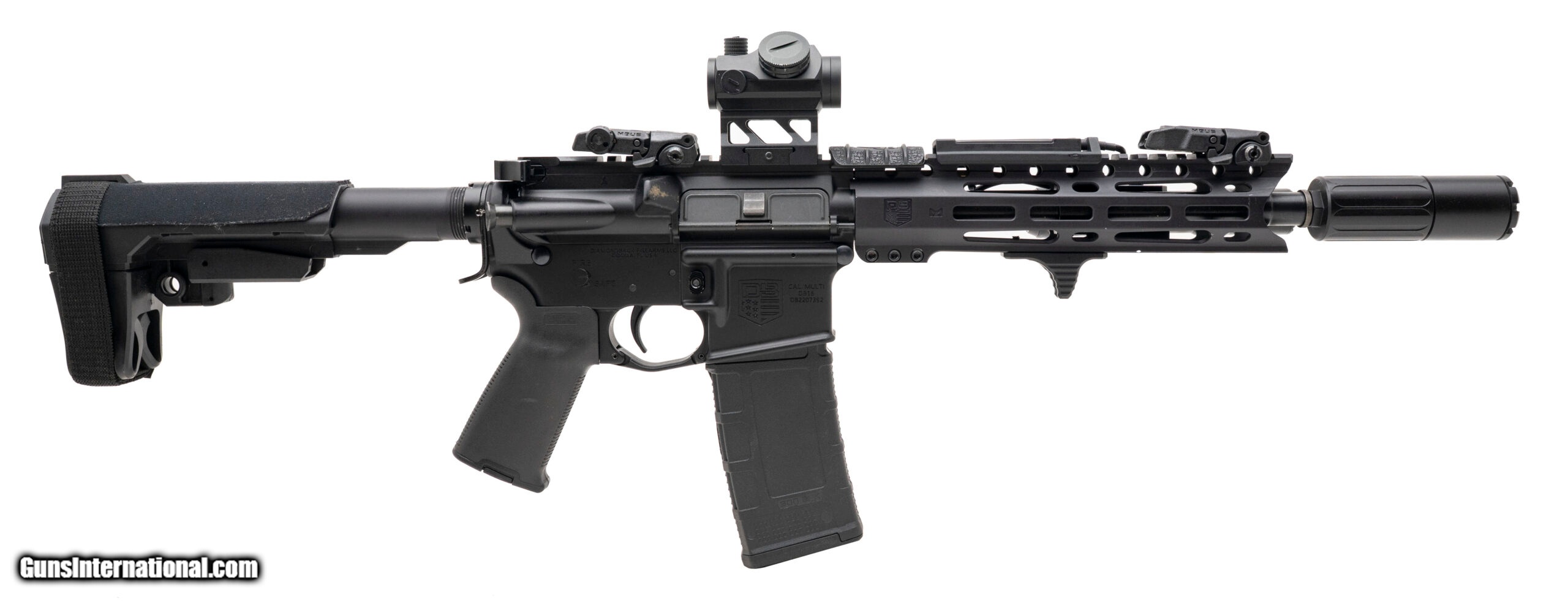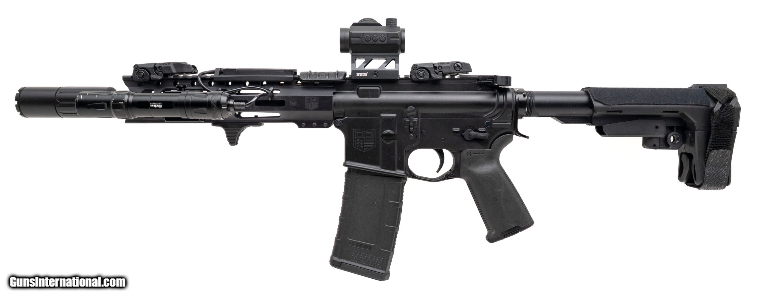 Description: "SN: DB2207392. Modern production, .300 Blackout with a 10"" barrel w/faux suppressor. Semi-auto tactical pistol with a Feyachi RDS-25 red dot optic w/riser, Olight Odin flashlight w/pressure pad, and Magpul pop-up sights. Overall condition is very good. SOLD |