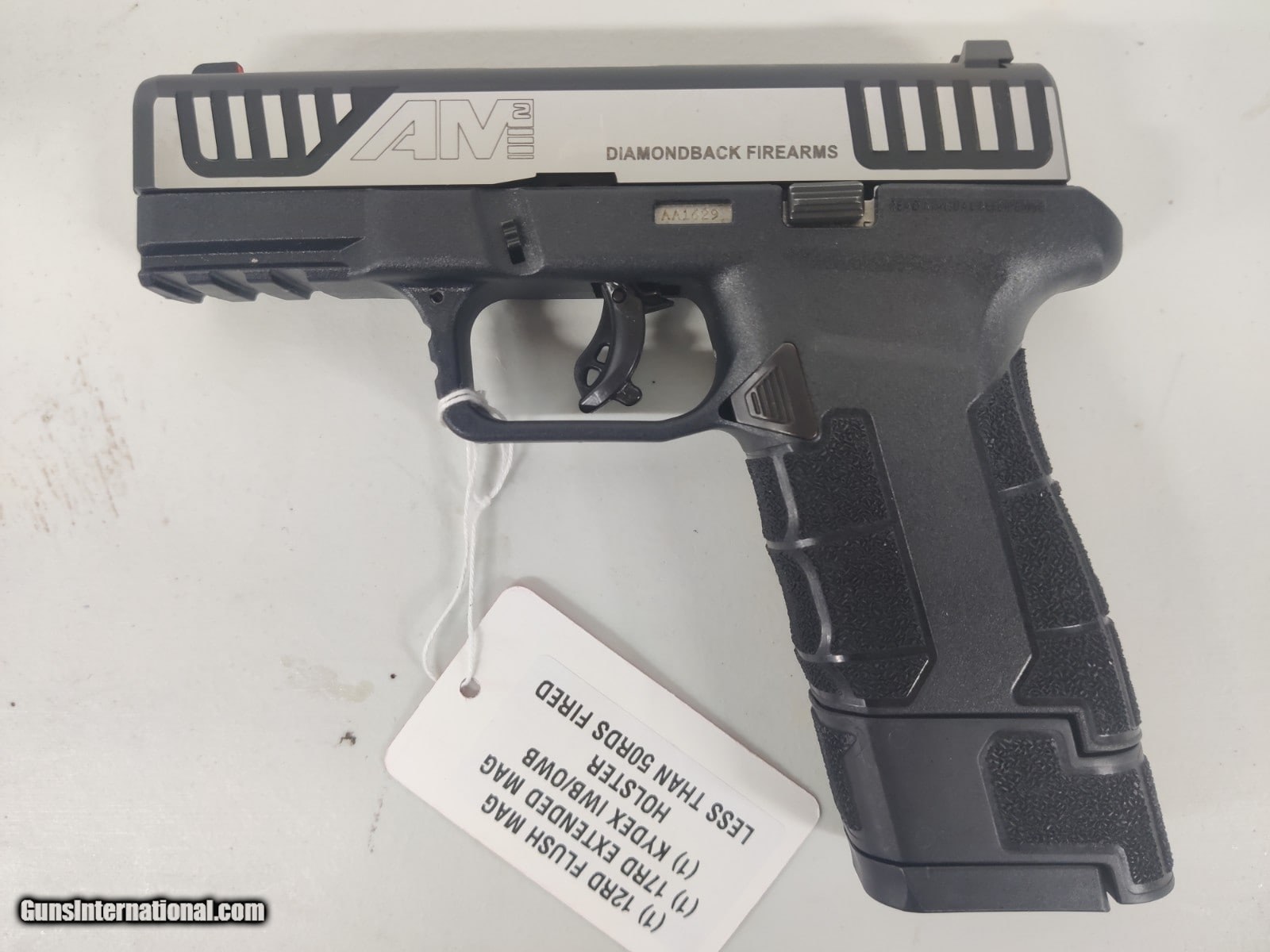 Description: Guns Listing ID: 867918 Diamondback AM2 9MM Semi-Auto Pistol w/2 Magazines, Kydex HolsterLess than 50rds fired through the gunComes with (1) extended magazine 17rdComes with (1) flush 12rd magazineVery clean and overall great conditionAlso comes with a OWB/IWB kydex holster2023-01581 SOLD Manufacturer: DIAMONDBACK Model: AM2 w/2 Mags, Kydex Holster Caliber Info: 9MM LUGER (9X19 PARA) Condition: Used - Non-Certified Barrels: 3.5 BARREL Finish: 1 |