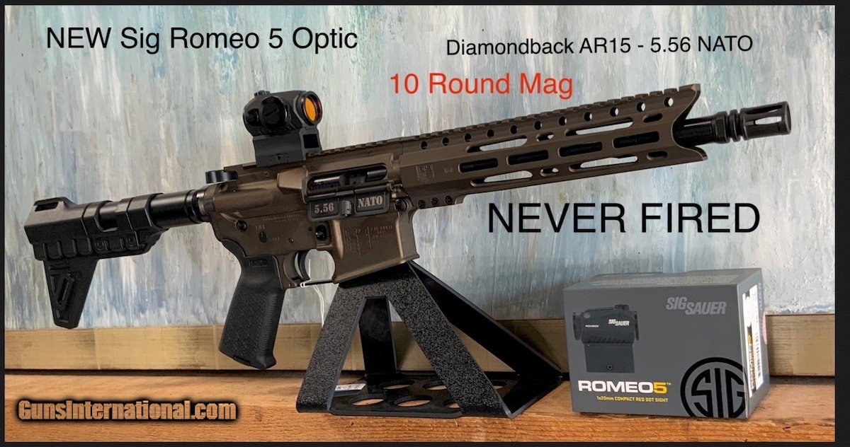 Description: Guns Listing ID: 673289 UN-FIRED and upgraded with a NEW Pistol brace and a NEW Sig Sauer Romeo 5 Optic. 10-round mag for restricted states... BETTER THAN NEW ! You will not be disappointed! SOLD Manufacturer: DIAMONDBACK Model: AR 15 pistol Caliber Info: 556 NATO Condition: Used - Non-Certified Barrels: 10 BARREL Finish: BRONZE |