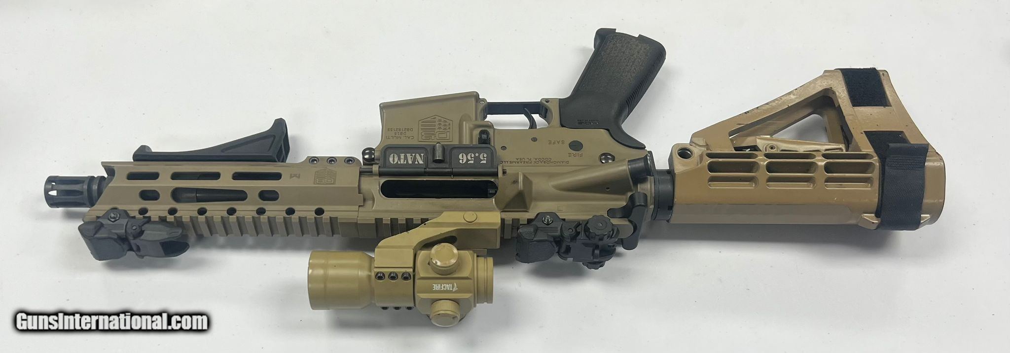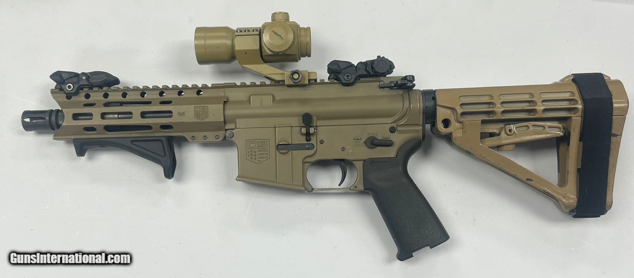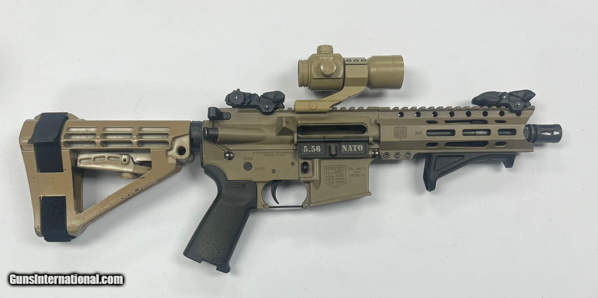 Description: Guns Listing ID: 581887 No box and no magazine. Comes with a TACFIRE scope. The Diamondback DB15 — 5.56×45 mm NATO is an AR-pattern, semi-automatic platform engineered for compact firepower and modularity. With a 7.0-inch barrel this configuration emphasizes maneuverability and short-range performance — ideal for range use, short-range tactical drills, or as the basis for a customized pistol/PDW build. The DB15 accepts common AR-15 components, and its modern, modular handguard and optics-ready upper make it an easy candidate for sights, lights, and other accessories. This listing is specified without a magazine. The brace has painted over. Gun is in good condition with a bit of ware. See photos for details! SOLD Manufacturer: DIAMONDBACK Model: DB15 Caliber Info: 5.56X45MM NATO Condition: Used - Non-Certified Barrels: 7" BARREL Action: SEMI AUTOMATIC Finish: fde |