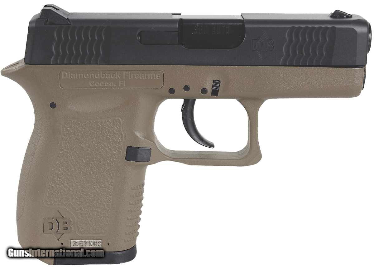 Description: Guns Listing ID: 422284 The Diamondback DB380 is a family of polymer-framed American made semi-automatic pistols chambered in 380 ACP. These micro-compact pistols have a 2.8 barrel against a 5.3 total length. An excellent concealed carry gun the DB380 features windage adjustable sights while the Finite Element Analysis slide and barrel are designed to reduce felt recoil. Details Diamondback DB380FDE Micro-Compact DAO 380ACP 2.8 61 FDE Poly GripFrame Blk FDE (FLAT DARK EARTH) FINISH SOLD Manufacturer: DIAMONDBACK Model: DB380 Caliber Info: .380 ACP Condition: new Barrels: 2" barrel Finish: FLAT DARK EARTH |
