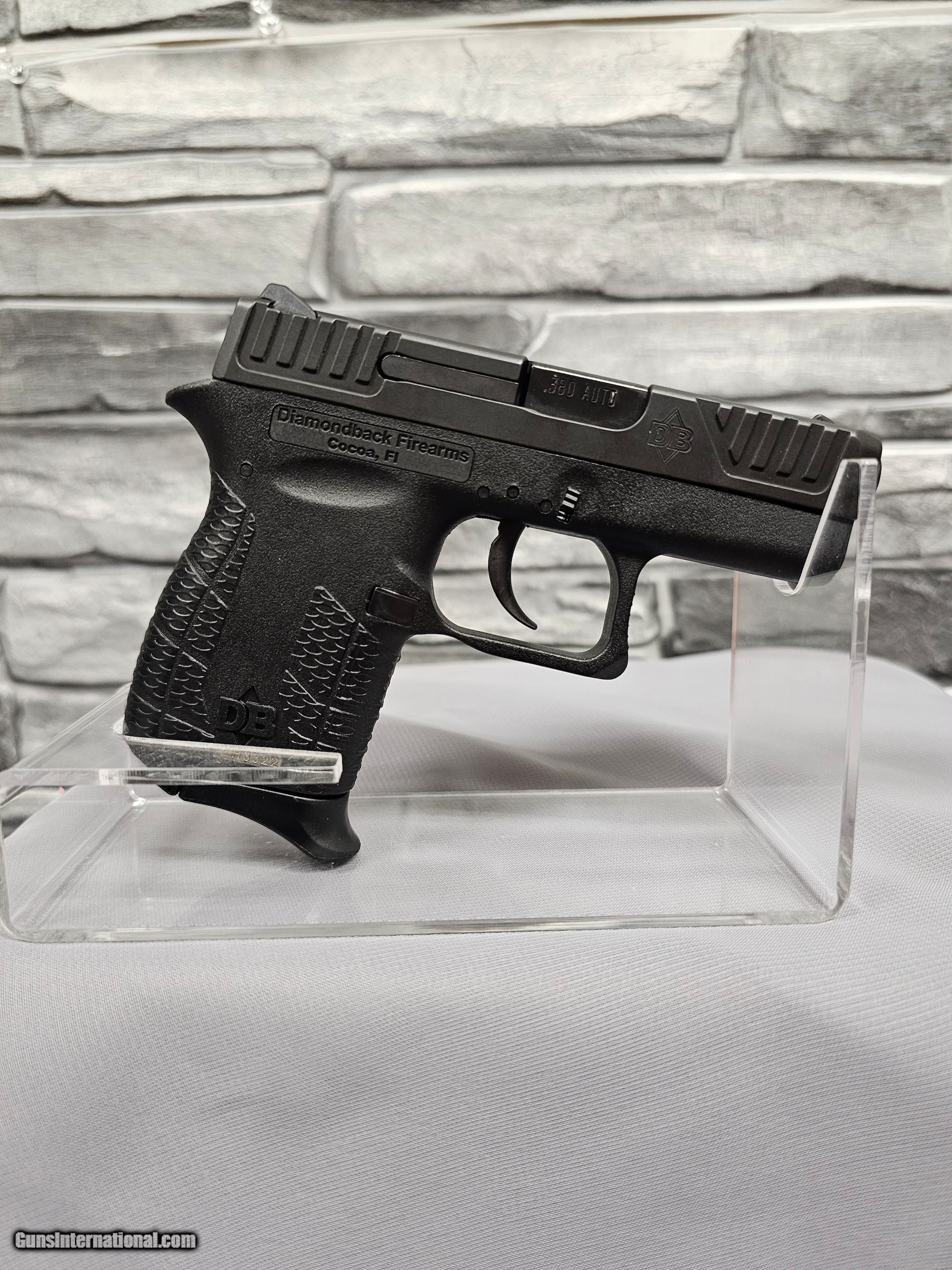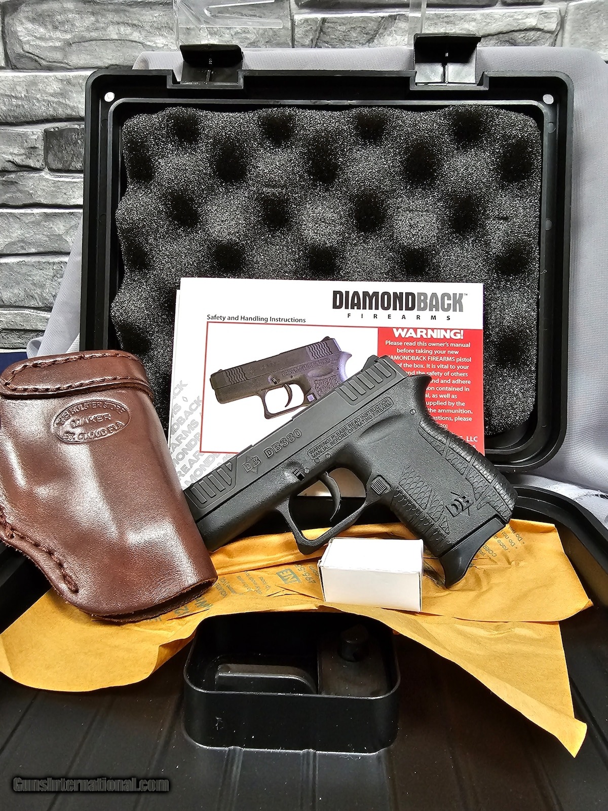 Description: Guns Listing ID: 909504 Used Diamondback DB380 is a nice little pocket pistol. It comes with the original hardcase, owners manual, trigger lock, waranty card, a left handed brown leather IWB holster, and one 6rd magazine. Function tested on range. SOLD Manufacturer: DIAMONDBACK Model: DB380 Caliber Info: .380 ACP Condition: Used - Non-Certified Barrels: 2 BARREL Finish: BLACK |