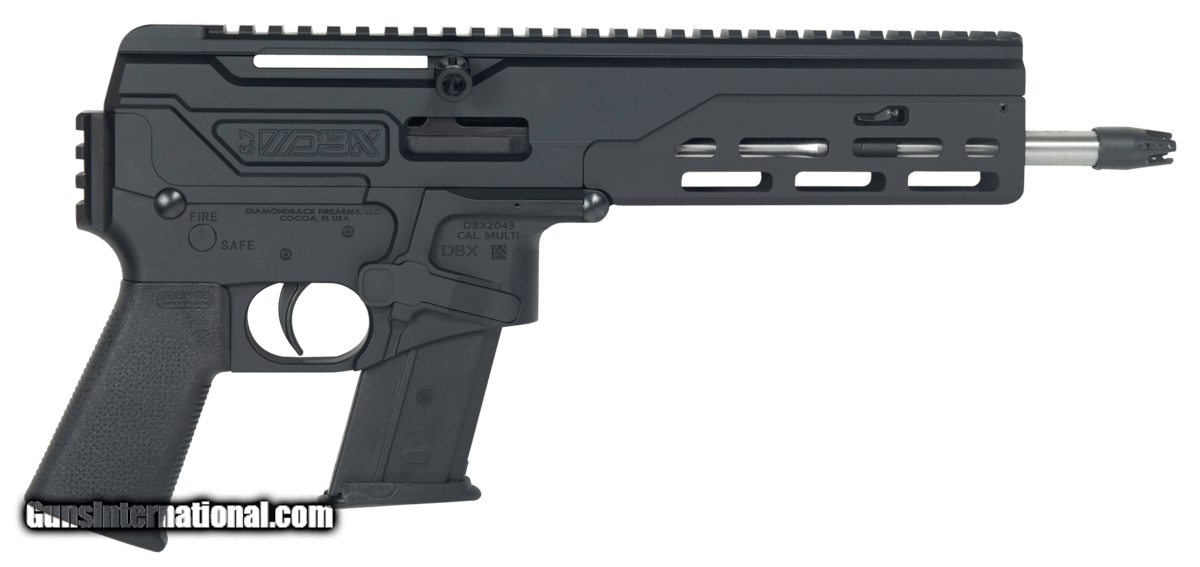 Description: Guns Listing ID: 253271 Diamondback Tactical Pistol DBX57CFB features a semi-auto action with a locked breech, dual gas piston operating system. Featuring a black hard coat anodized aluminum frame and handguard, the handguard is M-LOK compatible; DBX muzzle device with a thread pattern of 1/2x28 RH; standard AR15 Mil-Spec trigger and includes a 20rd magazine that is FN Five-SeveN compatible. SOLD Manufacturer: DIAMONDBACK Model: DBX57 Caliber Info: 5.7X28MM Condition: new Barrels: 8" barrel |