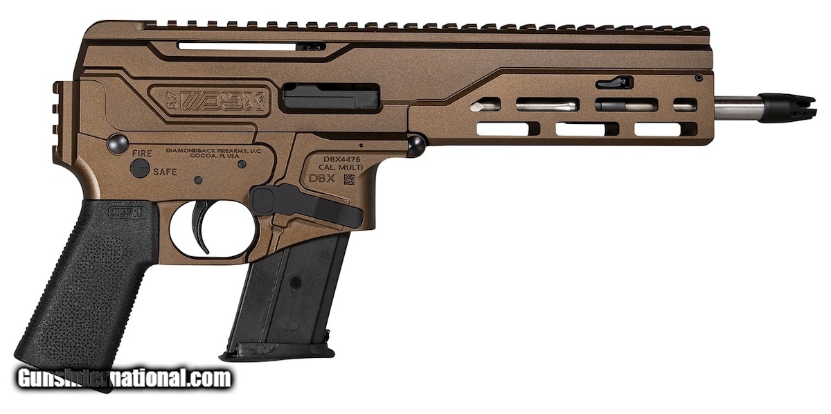 Description: Guns Listing ID: 461101 Diamondback Tactical Pistol DBX57CF features a semi-auto action with a locked breech, dual gas piston operating system. Featuring a Midnight Bronze hard coat anodized aluminum frame and handguard, the handguard is M-LOK compatible; DBX muzzle device with a thread pattern of 1/2x28 RH; standard AR15 Mil-Spec trigger and includes a 20rd magazine that is FN Five-SeveN compatible. SOLD Manufacturer: DIAMONDBACK Model: DBX57 Caliber Info: 5.7X28MM Condition: new Barrels: 8 BARREL Finish: BRONZE CERAKOTE |