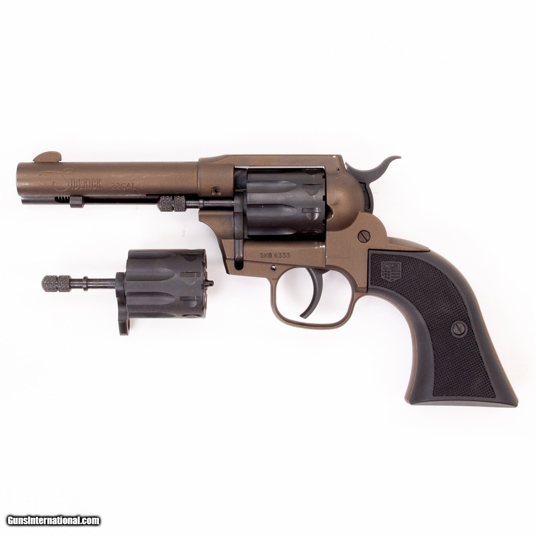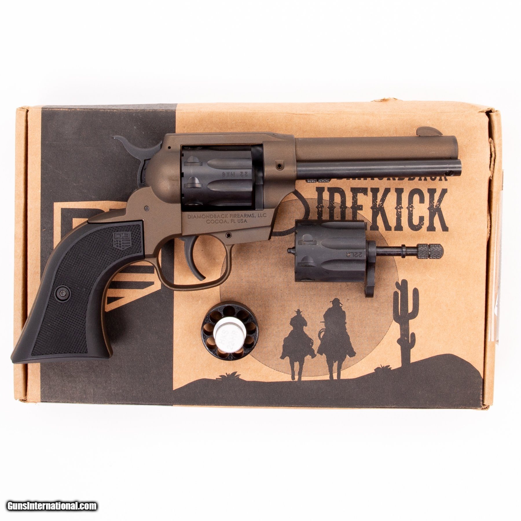 Description: Guns Listing ID: 1449636 This Diamondback Sidekick is a double-action/single-action model. It features fixed sights, black plastic grips, and a tip-out cylinder. Purchase includes the original box, owner‚‚s manual, an extra .22 LR cylinder, and an HKS 22-HR speed loader. Get the best bang for your buck when you get a Certified Used Firearm . When you see the Certified Used stamp on any of our firearms, you can be confident that you‚‚re getting exactly what you want – a gun only in very good to excellent condition and held to the highest quality standard. All Certified Used Guns come with a ‚‚no questions asked‚‚ return policy . PLUS, ALL CERTIFIED USED GUNS SHIP F SOLD Manufacturer: DIAMONDBACK Model: SIDEKICK Caliber Info: .22 LR/.22 WMR Condition: Used - Non-Certified Barrels: 4.5 BARREL Finish: BRONZE |