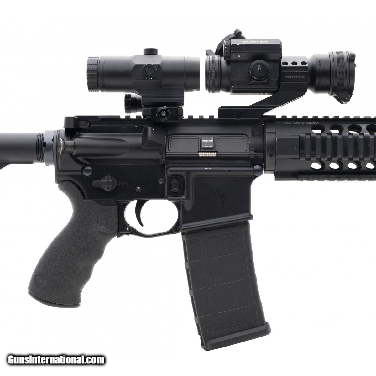 SN: DM18387K. Semi-auto sporting rifle with 16"" barrel, 15"" Midwest Industries quad rail, Ergo pistol grip, Magpul stock, Magpul safety. Overall excellent condition. Comes with Vortex Strike Fire II and magnifier.