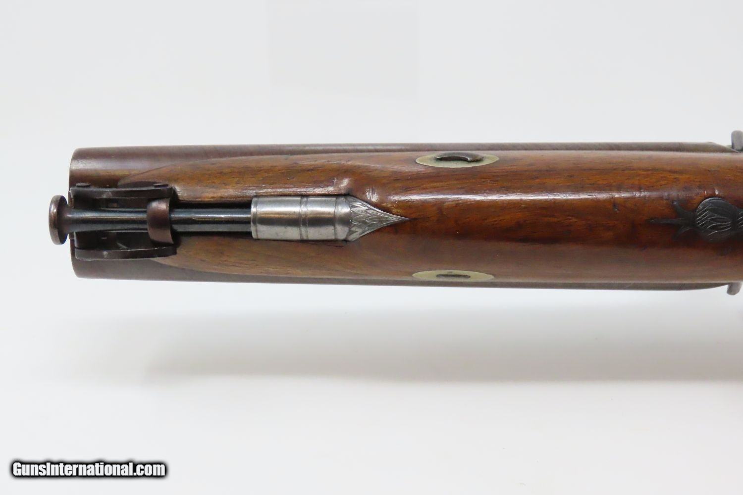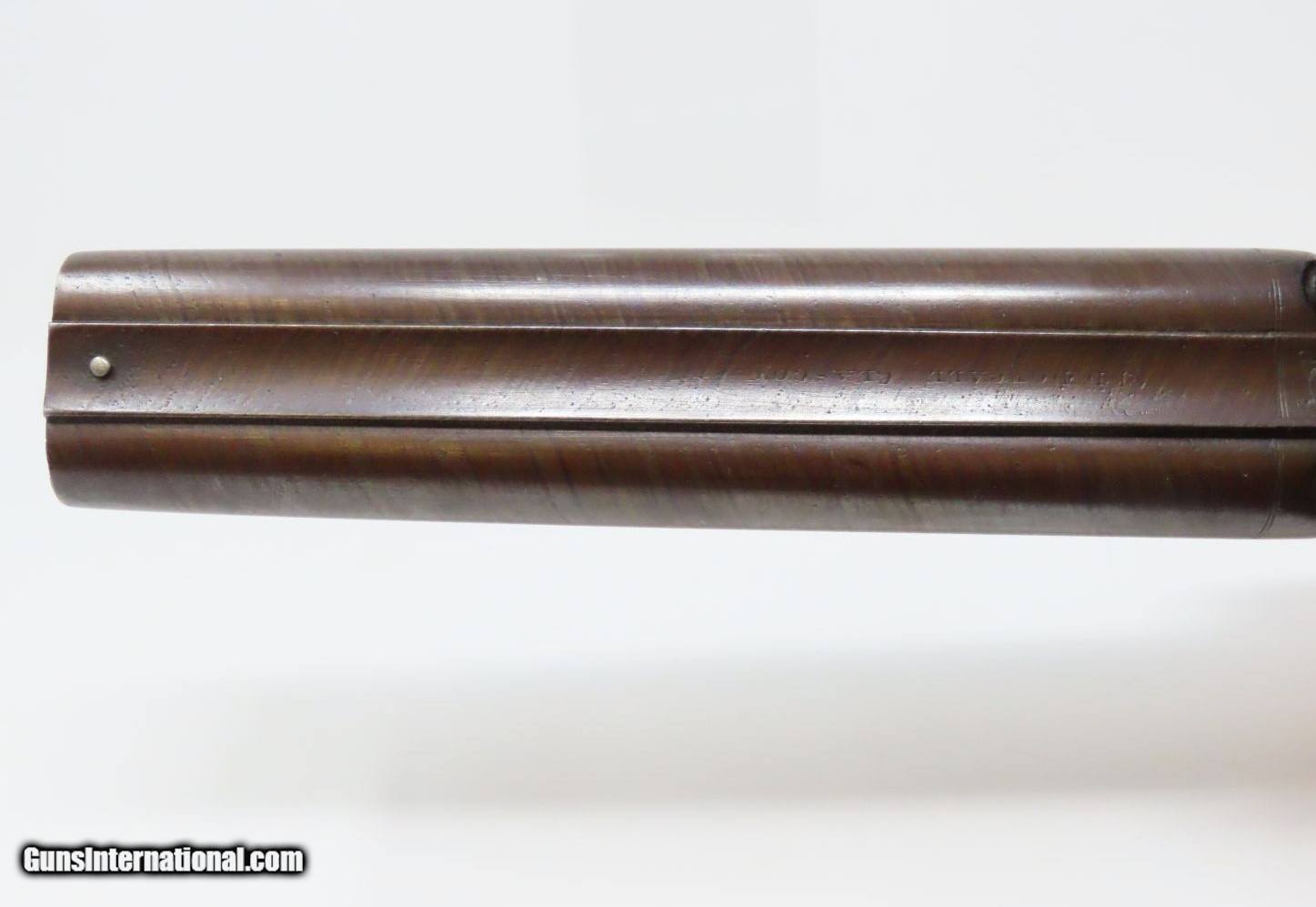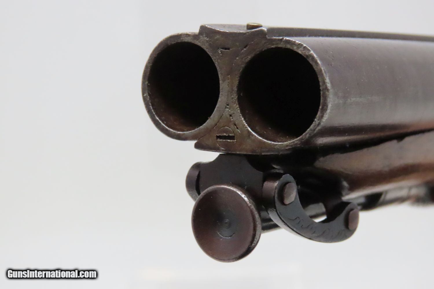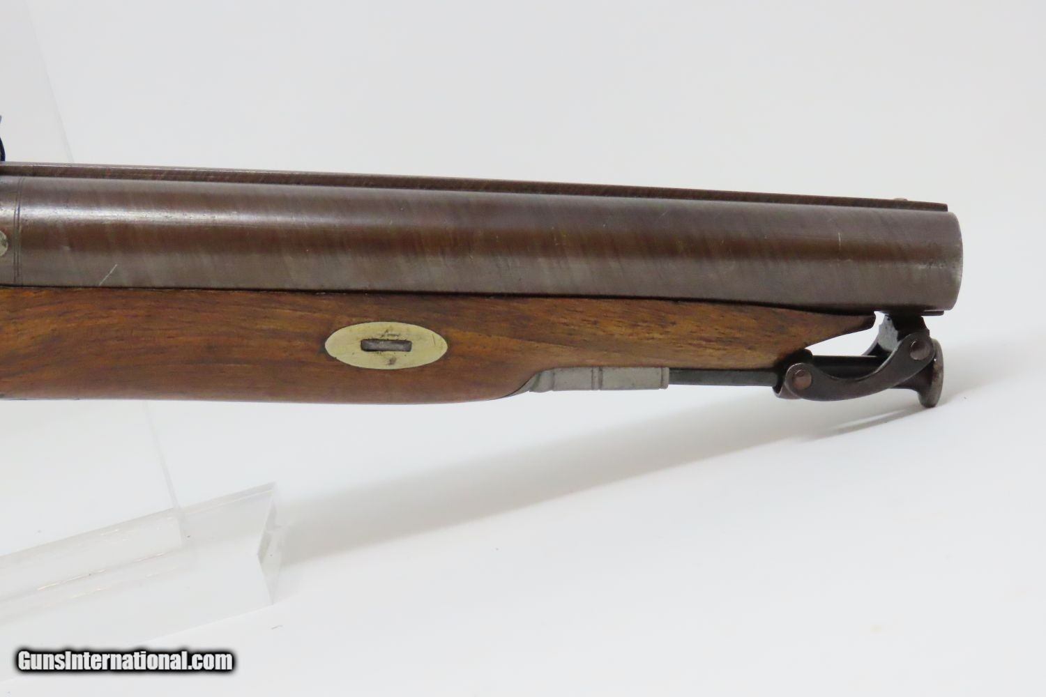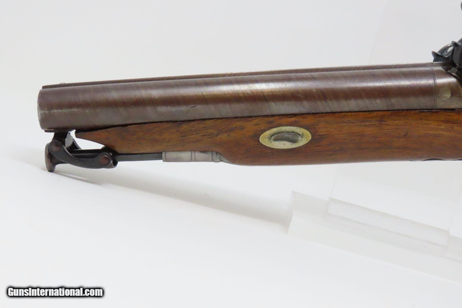Description: BRACE of HOWDAH Pistols by JD DOUGALL of GLASGOW, SCOTLAND TIGER PROTECTION Famous in India for Use Against Tigers! Here we present an antique Brace of Howdah Pistols by J.D. Dougall of Glasgow, Scotland. Howdah pistols were used in the far flung extremities of the British Empire, primarily as tiger repellant. They are named for the “howdah”, a large basket-like seat that men used to ride elephants with as they hunted from their backs. The sport originated in the late 1700s and having a flintlock or percussion backup sidearm with two large doses of lead seemed to be the answer for dangerous game or even the natives. Of course, a pair of large bore doubles would be formidable for just about anything! “J.D. DOUGALL” is engraved on the locks and “J.D. DOUGALL/GLASGOW” is atop the barrels. The locks, barrel tangs, and trigger guards are engraved with detailed floral designs. The overall condition is on both pistols is very good. Nicely refinished. The actions are strong all around. The bores are smooth and remain in good shape. The checkering on the handles is still sharp, thus offering a strong and confident grip. Here is a very nice set of mid-19th century manufactured pistols that would look great on display. An epic set of pistols from the British Empire! Own the original! This is a legitimate antique and not a reproduction. Barrels are 6-3/8 inches. Caliber: .56 Overall condition as seen in photos. Very Fast. Very Safe. FREE SHIPPING WORLDWIDE. Delivered directly to your door by express mail! Guaranteed AUTHENTIC & Includes CERTIFICATE OF AUTHENTICITY. ancestryguns $3695 #20527 SOLD Antique: Yes |