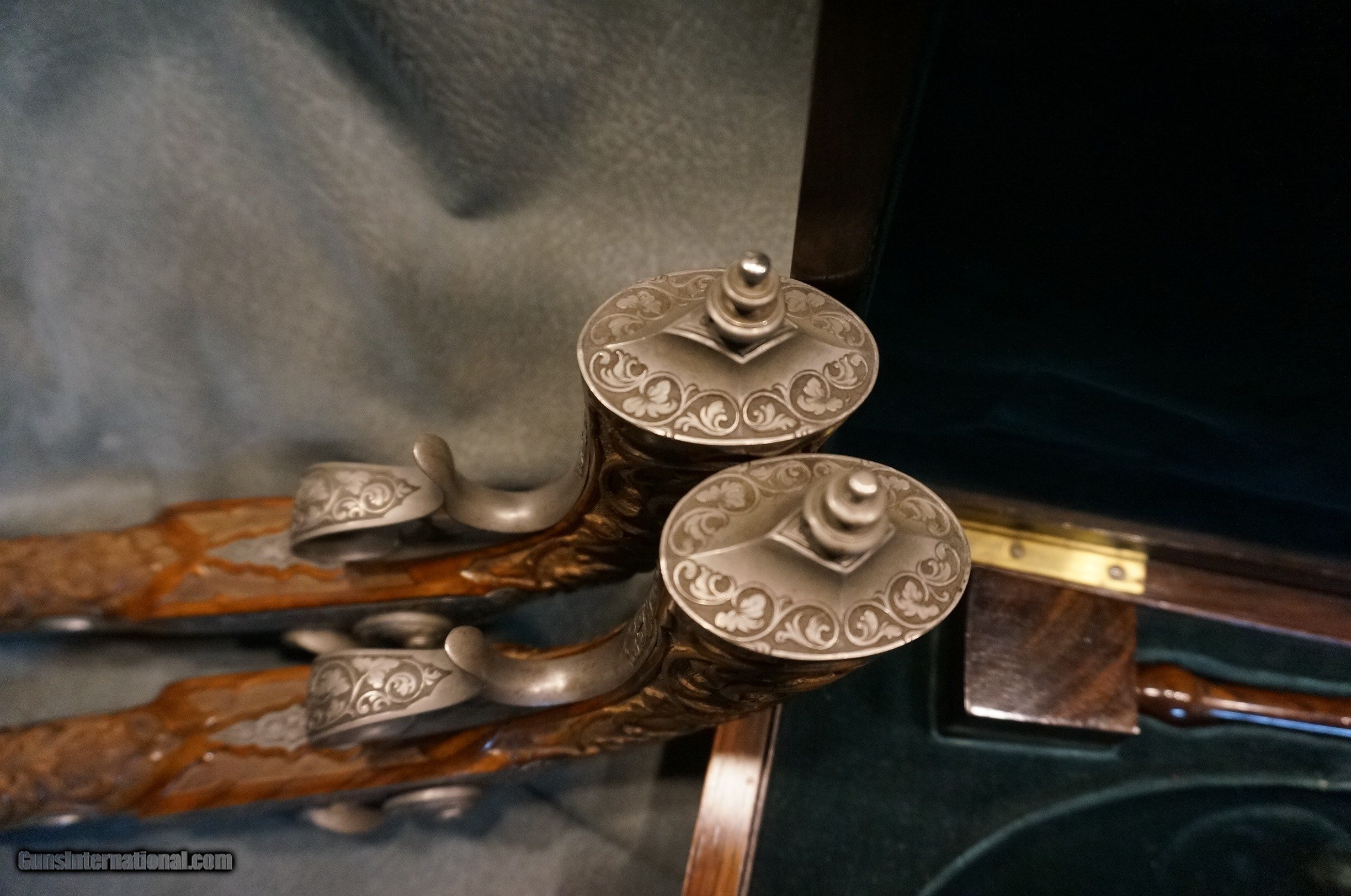 Description: Devisme Dueling Pistol Set,made in Paris,50cal 10" barrels marked #1 and #2,fine engraved metal and carved stocks,excellent condition with the case and accourtrements.Superb set! GUN COLLECTIONS WANTED FOR CASH! We buy, sell, consign and trade new and used firearms. This is our 43rd year in business. We offer 90 day layaways with 20% down. No return on layaways. Firearms will need to be transferred through a FFL dealer. Prices reflect a cash discount. There will be 3% added to credit card sales. We trade for gold and silver. THANK YOU! SOLD Antique: Yes |
