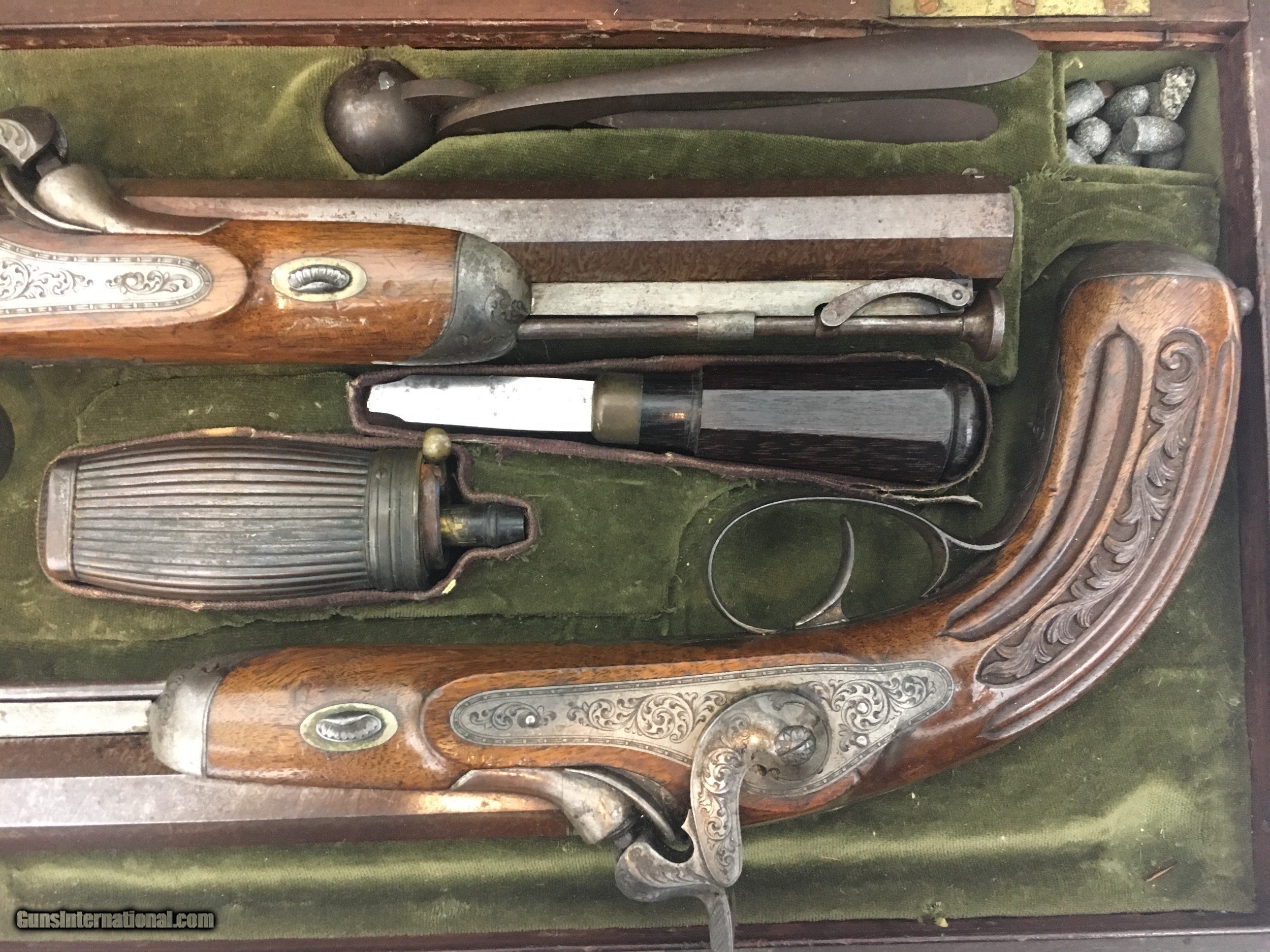 FINE CASED LARGE BORE OFFICERS OR DUELING PERCUSSION PISTOLS BY LEPAGE PARIS