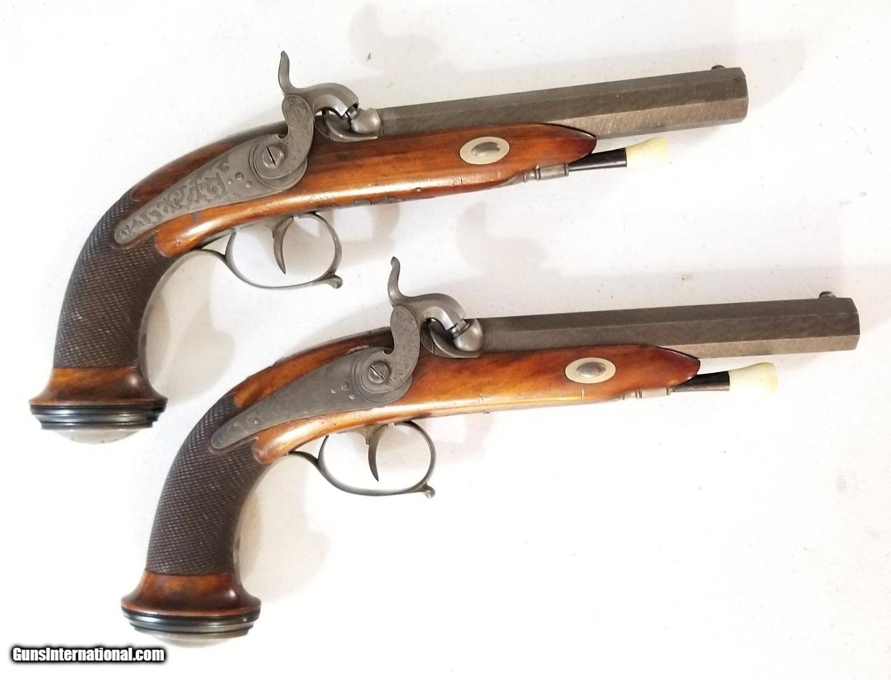 Pair of Engraved Belgain .61 Cal Percussion Dueling / Target Pistols