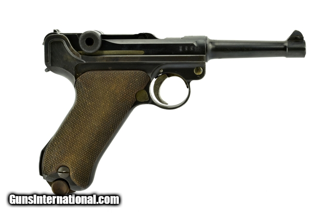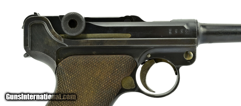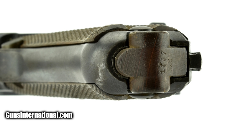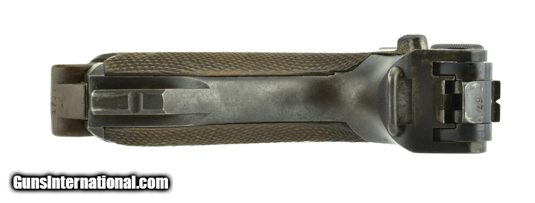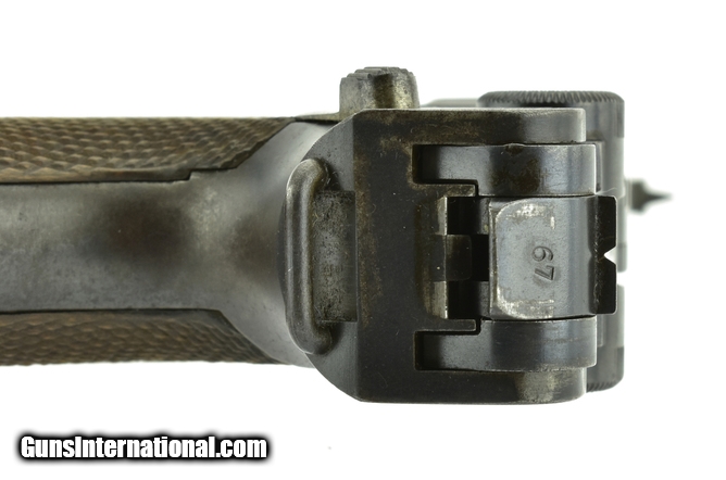 Description: DMW Luger 9mm caliber pistol. DWM Manufactured date 1917. Excellent bore. Serial numbers are matching; except for the slide plate (which is 2 numbers off 69) magazine is numbered to gun. Grips are unnumbered, and correct for era. Approximately 95% blue with very good straw colors. Very good WWI German army issue Luger.