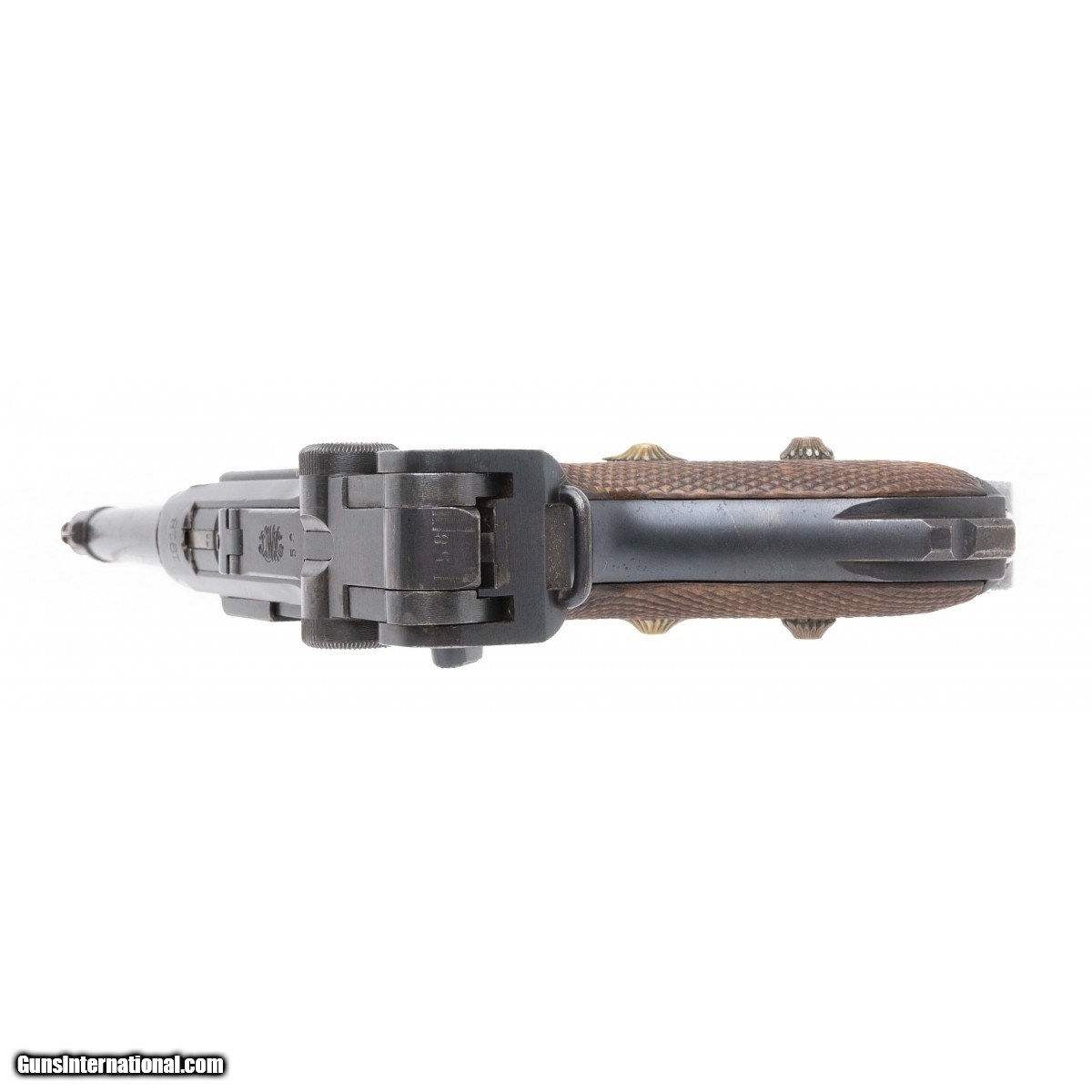 Description: " WWII bring back. (Luger is dated 1918). Serial numbers are matching, except for the magazine. Grips have collar tab insignia (we have seen several Lugers that GI's have added the insignia to the grips). Left side of frame has a name inscribed. Comes with a GI's holster that has been altered to fit a Luger. A neat bring back Luger. (Note: Barrel is a later replacement and S/42 marked.) SOLD Curio/Relic: Yes |