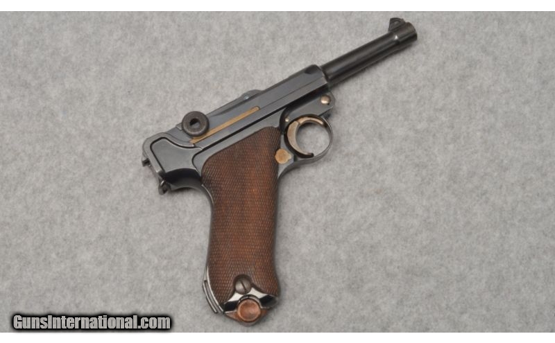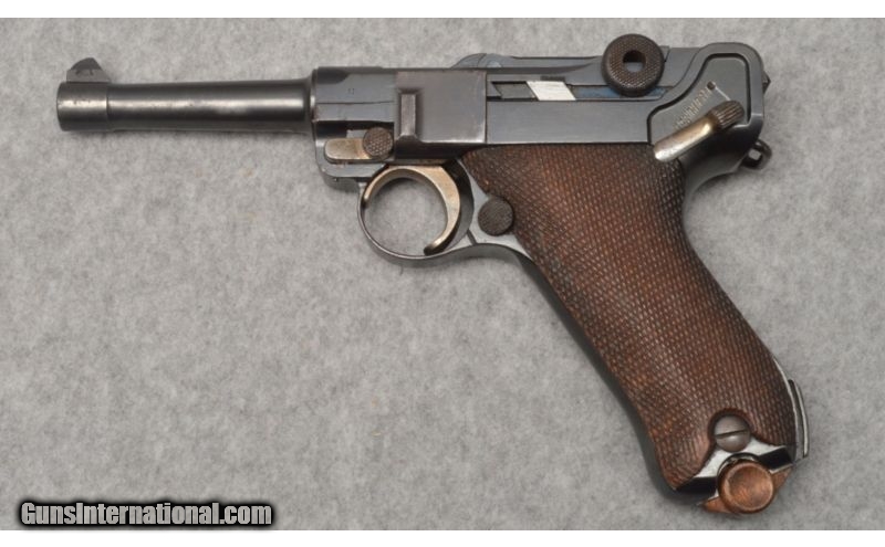 Description: All matching with commercial flap holster. Original unnumbered magazine SOLD Manufacturer: S/N - 864 Caliber Info: 7.62 Para Metal Condition: Good Wood Condition: Good Bore Condition: Bright & Crisp Barrels: 4 Triggers: Factory Stock: Checkered Walnut Grips Weight: 32 oz Sights: Fixed Item Location: West Chester, OH |