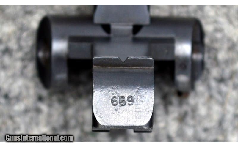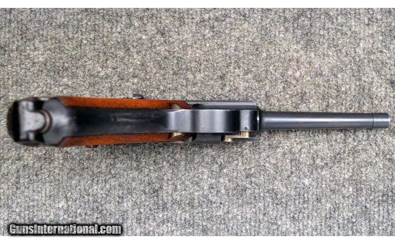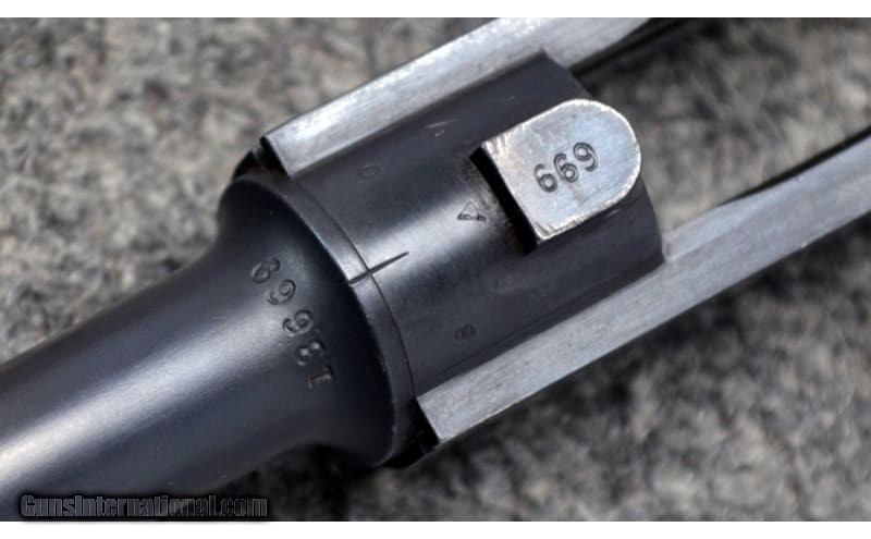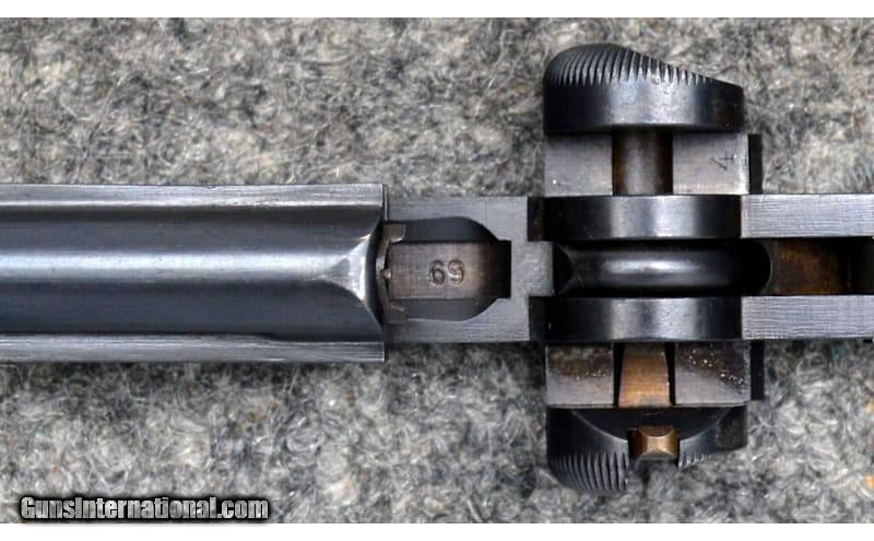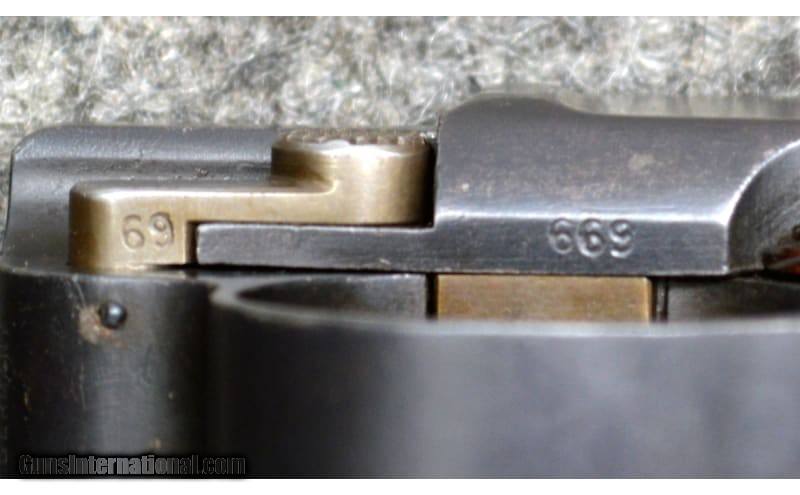 Description: For your consideration, a Deutsche Waffen und Munitionsfabriken model 1900 American Eagle Luger pistol chambered in 7,65x21 Parabellum. This piece is an excellent representation of commercial Luger pistols. It exhibits the following early characteristics: narrow trigger, grip safety, flush sideplate, flat spring extractor, flat and recessed breech block, and dished toggles with toggle lock. All numbered components match including grips, and the takedown lever and sideplate are uncharacteristically numbered as well. The magazine has the later, rimmed loading button for which the frame is correspondingly relieved. Prospective owners can expect strawed parts to rate at 60% or greater. Being marked "Germany" and by its serial number vs known ranges, this is a commercial gun, rather than part of the military trials. .30 Luger/7.65x21 Parabellum Metal Condition: Excellent Wood Condition: Excellent Bore Condition: Good Barrels: 4.75 Triggers: Smooth Face Weight: 2 lbs Sights: Iron Sights Item Location: Hamburg, PA Price: $1,899.99 Contact Seller |