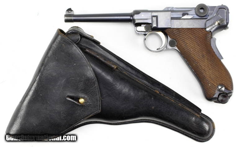 Description: This is a "1906 Royal Portuguese Army Luger, Made in 1908, as part of a 5000 Gun Order from the Portuguese King Manuel II. DWM Scroll on Front Link, No Stock Lug, Royal Portuguese Crest above Chamber. 4 3/4" Barrel, 7.65 Caliber. Proof 25, All numbers match, Except Mag, Not Numbered. SN#200 of 4460 known to have been made. Nice Checkered Walnut Grips. Additional Pictures available. SOLD Curio/Relic: Yes |